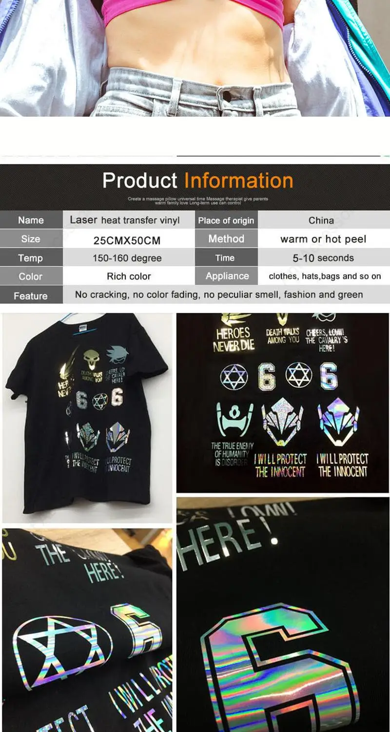 Бесплатная доставка, 1 лист, 25 см x 50 см, лазерная теплопередача, виниловая голограмма, радуга, ПВХ, пресс для футболок, термоклейкая пленка HTV