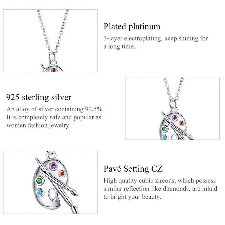 ❤【Описание】 дизайн металлической кисти и цветовой палитры полон художественного смысла; Несколько красочных цирконов пунктирны и действуют как пигменты, во время которых сосуществуют творчество и красота; Гальванизированная Платина имеет нежную текстуру; длину цепи можно регулировать. ❤[Характеристики] Длина: 44 см (регулируется), размер подвески: 1,4*1,5 см, Вес: около 2,2 г ❤【Стерлинговое серебро 】 серебро 925 пробы с фианитом и покрытием платиной, твердое Стерлинговое Серебро с маркировкой 925 пробы, стиль не содержит никеля, свинца, кадмия, гипоаллергенный. Гарантия качества, приятно для кожи, удобно и удобно носить, не вредно для вашего здоровья. ❤【Для подарка 1 шт. ожерелье из серебра 925 пробы и 1 Подарочный мешочек, который является идеальным подарком для мамы, дочери, внучки, Тёти, сестры, друзей. ❤【BAMOER YOU】 чтобы обеспечить ваше полное удовлетворение, любые вопросы о продуктах BAMOER, просто не стесняйтесь обращаться к нам, мы постараемся сделать все возможное, чтобы помочь вам.