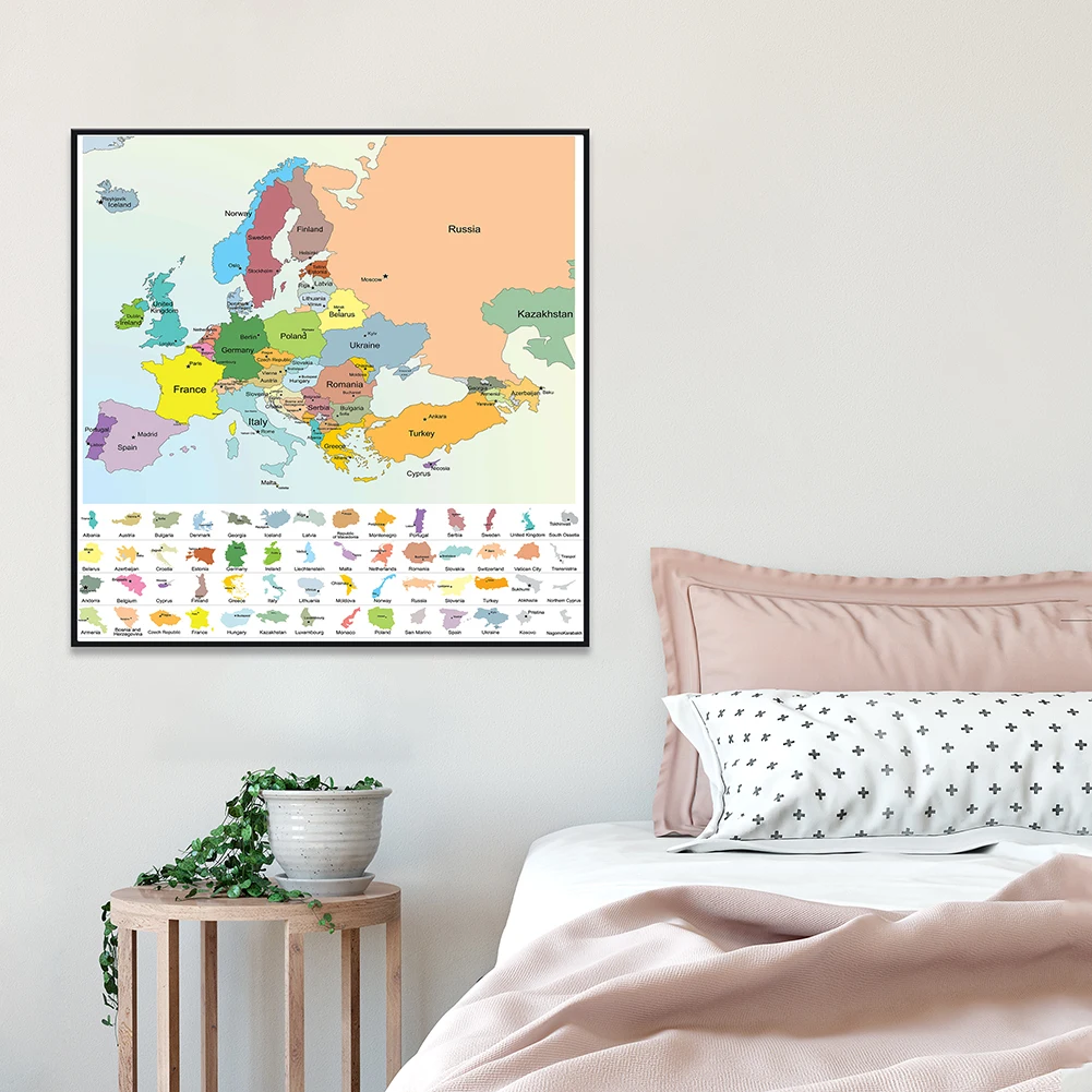Карта Европы с деталями, 90*60 см, настенный плакат, Картина на хол...