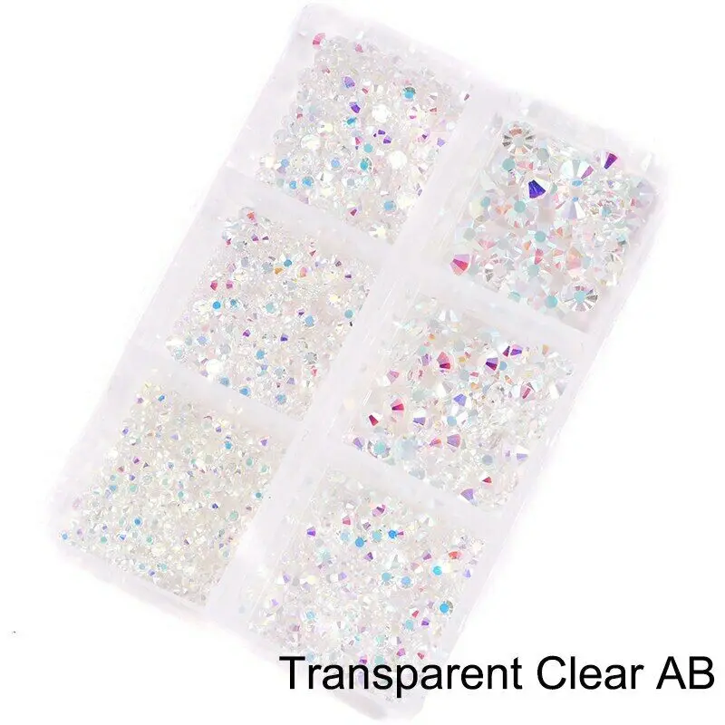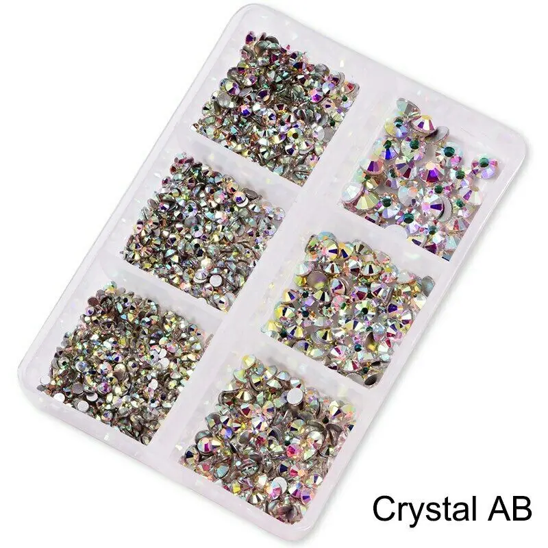 Размер стеклянные стразы для дизайна ногтей AB Crystal 1200 шт. не горячая фиксация стразы s для дизайна ногтей Стразы s Блестящий Алмазный кристалл смешанный драгоценный камень