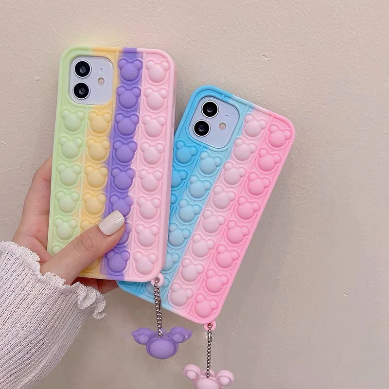 Милый мультяшный чехол для телефона с подвеской медведя для iPhone 11 12 13 Pro Max Mini X XS XR SE 6 7 8 Plus Kawaii, Мягкая силиконовая задняя крышка для детей