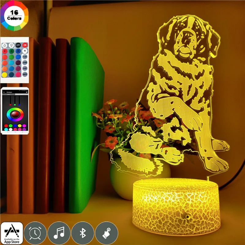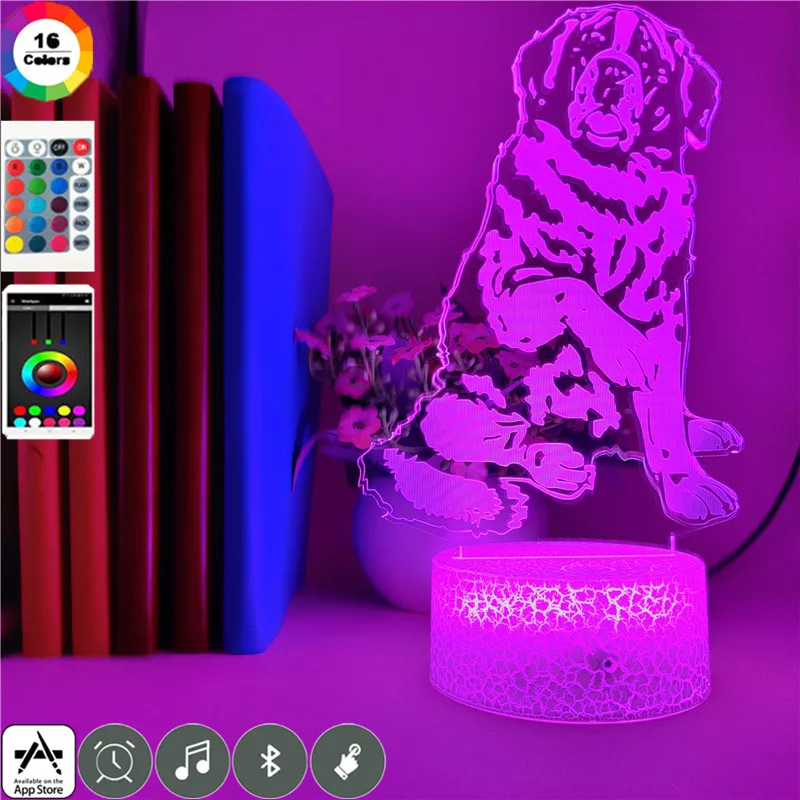 Собаки-самый верный Партнер человека, который может принести бесконечный комфорт и удовольствие нам и детям. Существует так много трогательных историй между домашними животными и их хозяевами. Вы можете найти много видов собак здесь и надеюсь, что один из них поможет вам вспомнить ваши счастливые воспоминания. 3D светодиодный Ночной светильник может быть это хороший выбор для вас, чтобы сохранить счастливые воспоминания вокруг вас и вашей семьи. Он также может держать вашу домашнюю компанию.