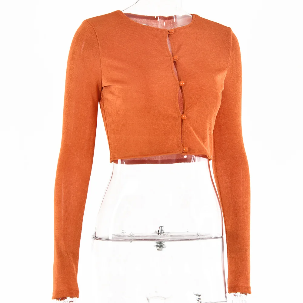 Женский короткий топ на пуговицах, с длинным рукавом, с круглым выр...