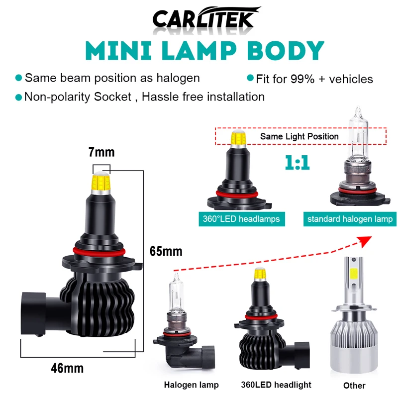 Автомобильные светодиодные лампы H7 360 Mini 9006 лм H1 H4 H8 H9 H11 автомобильные лампы Дальний свет HB4 9005 HB3 противотумансветильник фары Plug And Play Turbo