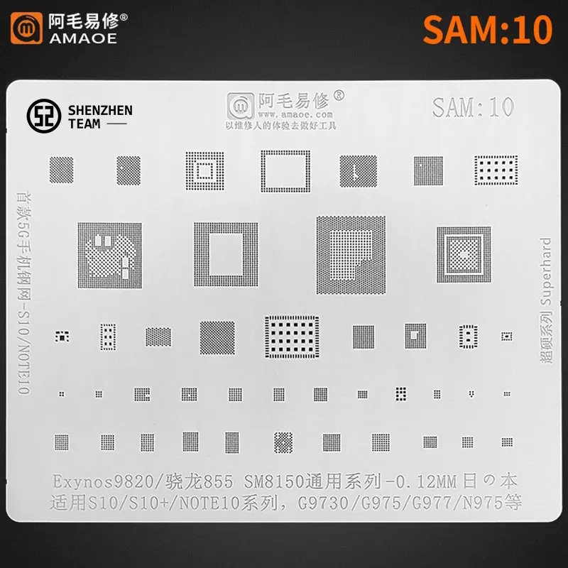 Трафарет AMAOE SAM:10 для SAMSUNG S10 S10 + Note10 G9730 G975 G977 N975 Exynos9820 SM8150, трафарет, Оловянная посадочная сетка