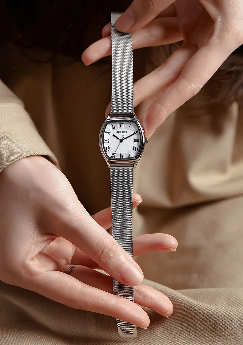 Женские часы Julius ремешок для наручных часов из нержавеющей стали JA-1242 браслет женские наручные часы кварцевые цепи Классический RetroTonneau подарочная коробка