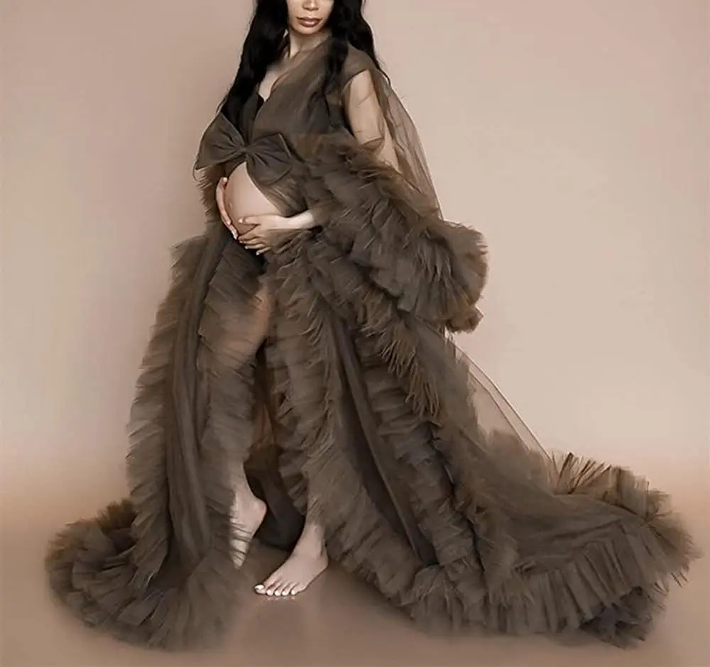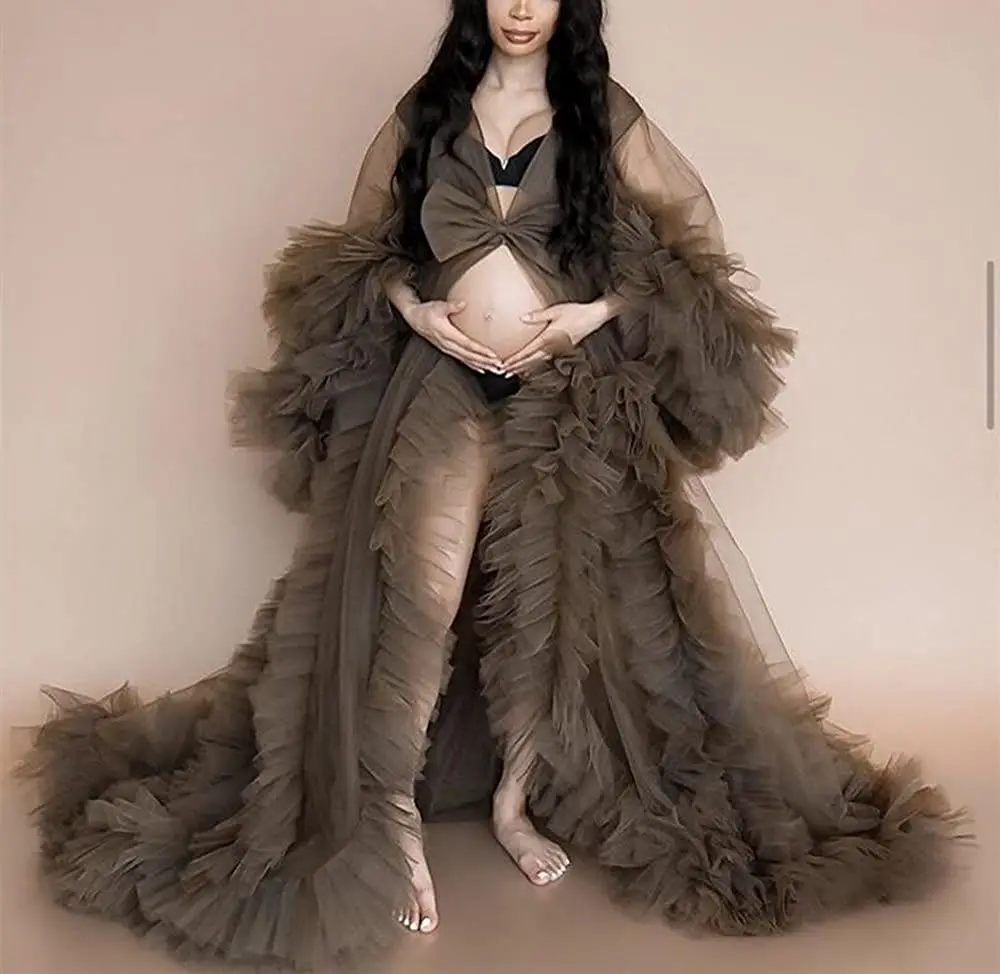 Шикарные Вечерние платья с рюшами, Женский тюлевый халат, пышное прозрачное длинное платье для ванной, на заказ