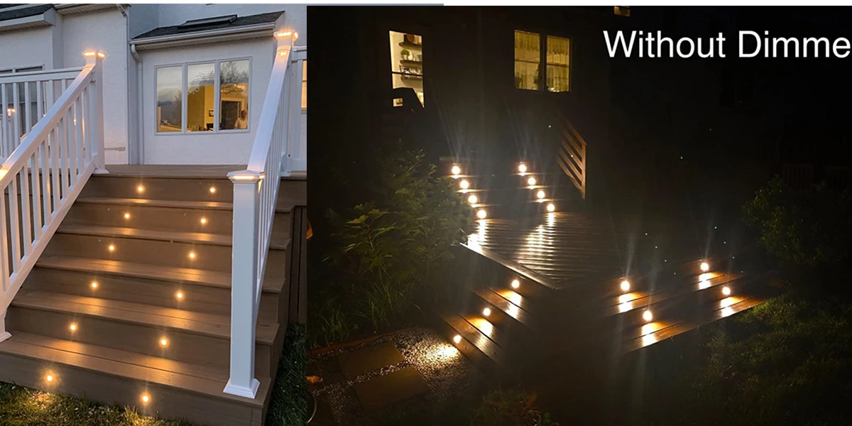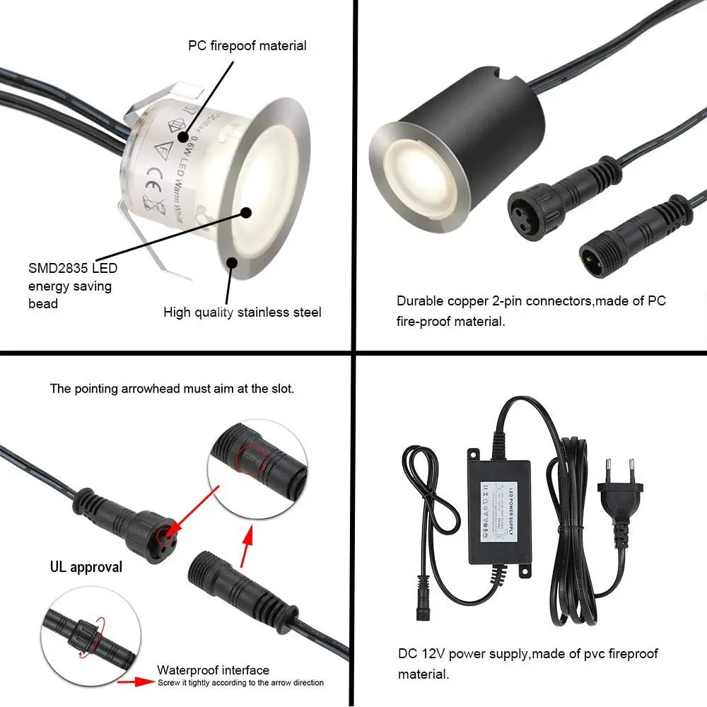 【Высокая яркость и больше безопасностиЯркий теплый белый светодиодный светильник создает впечатляющий Звездный эффект, благодаря чему вы будете чувствовать себя милым и комфортным в своем доме. Добавьте Черный Защитный корпус для встроенных, установленных на полу/каменных лестницах, будет безопаснее для комплекта светодиодных палубных светильников.