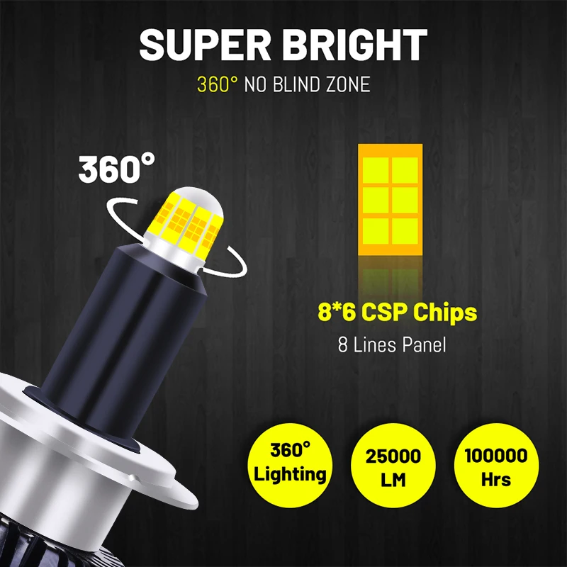 Светодиодные фары H7 6000K 25000LM 360 градусов CSP чипы 9012 HIR2 ...