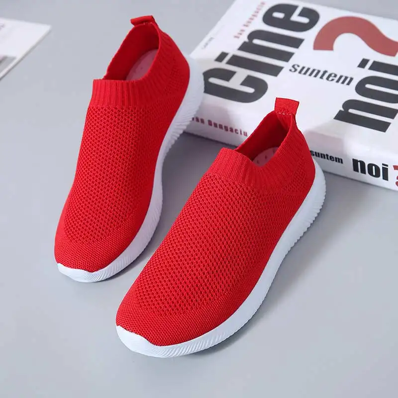 Женские кроссовки без шнуровки, дышащие сетчатые сникерсы на плоской подошве, однотонные, 2021