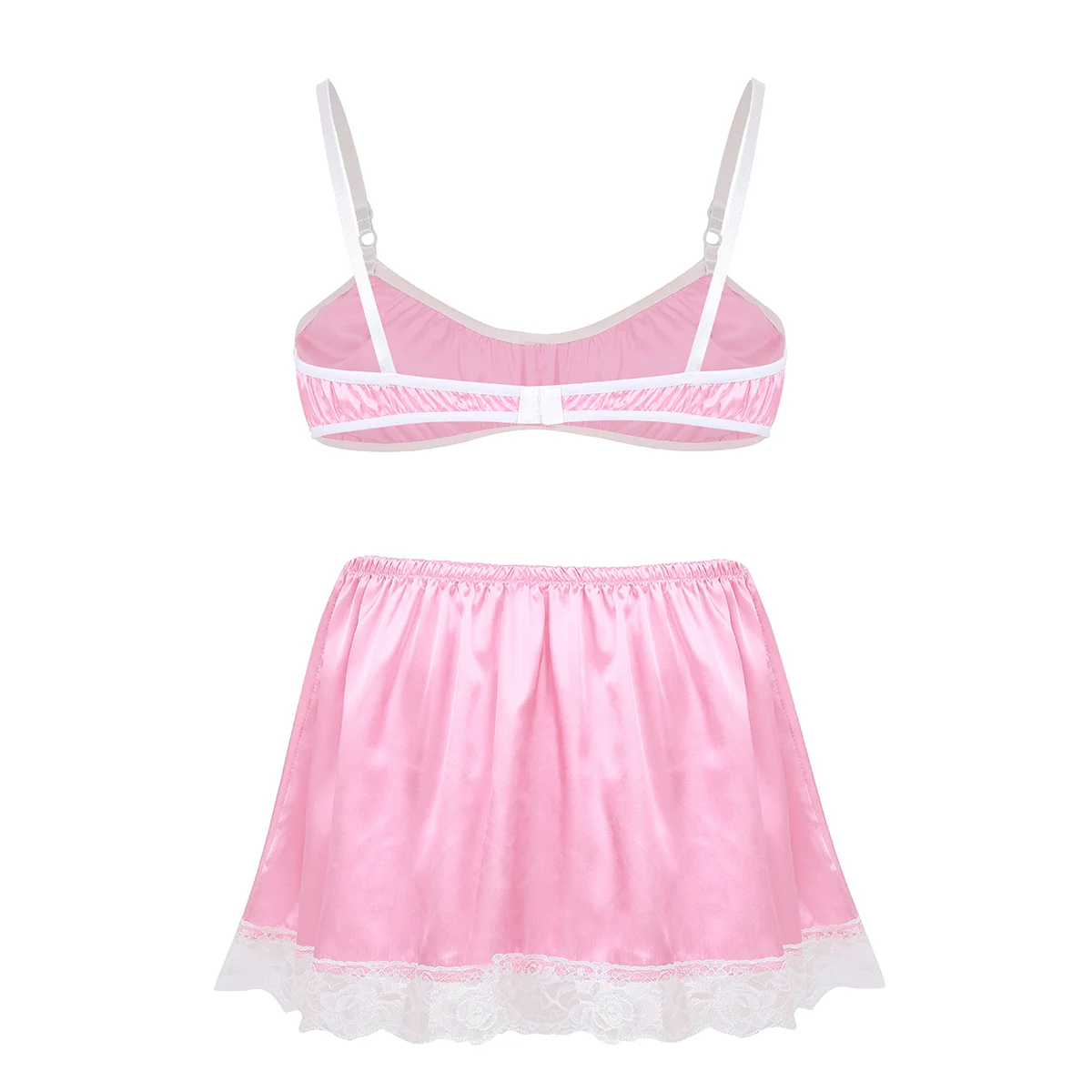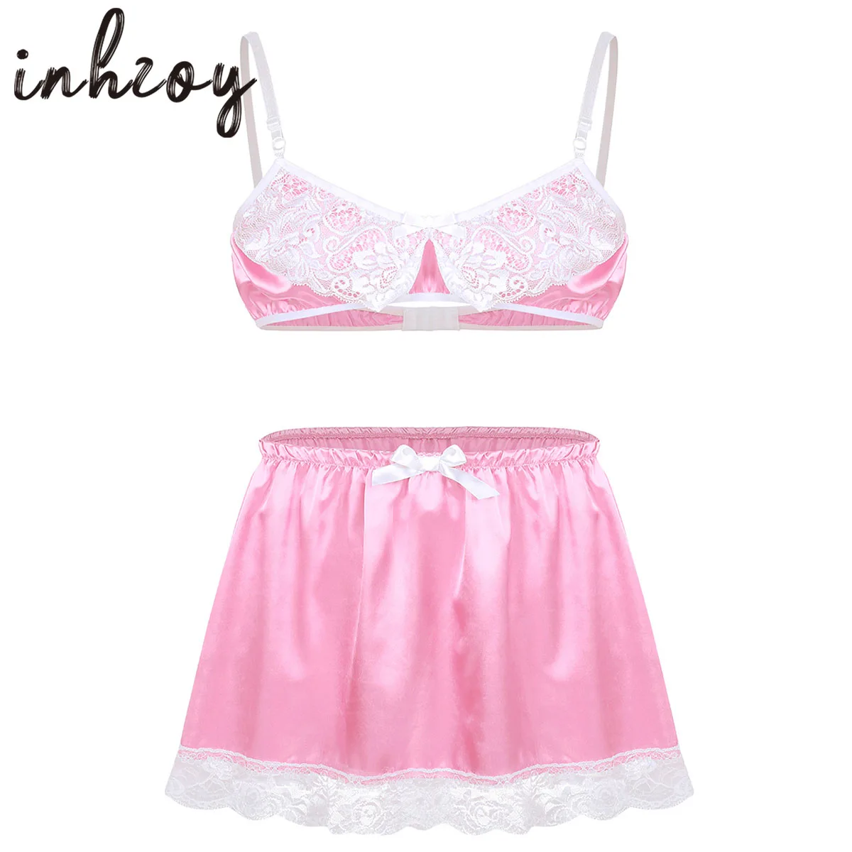 Особенности: Мужское модное атласное нижнее белье Sissy, очень женственное и нежное. Бюстгальтер без косточек с регулируемыми бретельками и эластичной короткой юбкой. С кружевной отделкой, очень легкая и гладкая ткань, мягкая и удобная в носке. Отлично подходит для свиданий, свадебных ночей, медового месяца, хороший подарок для вашего любимого. Пожалуйста, проверьте размер перед покупкой, ручная стирка в холодной воде.
