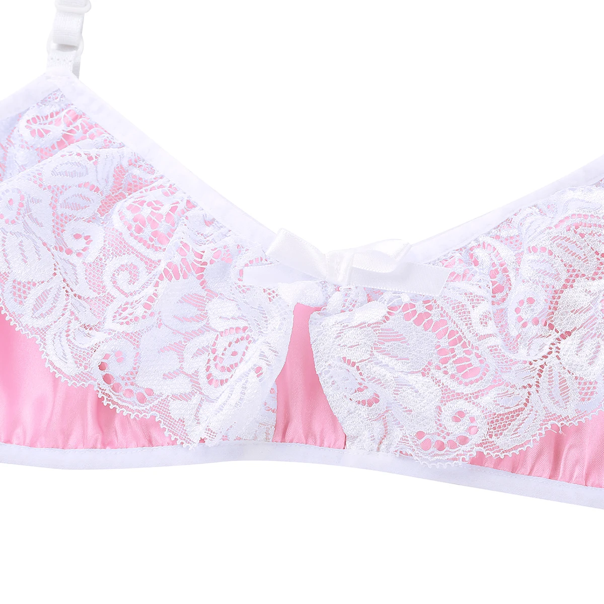 Мужской костюм из двух предметов, розовый кружевной бюстгальтер с оборками, топ для геев, мужские трусы с оборками, одежда для сна, домашняя одежда
