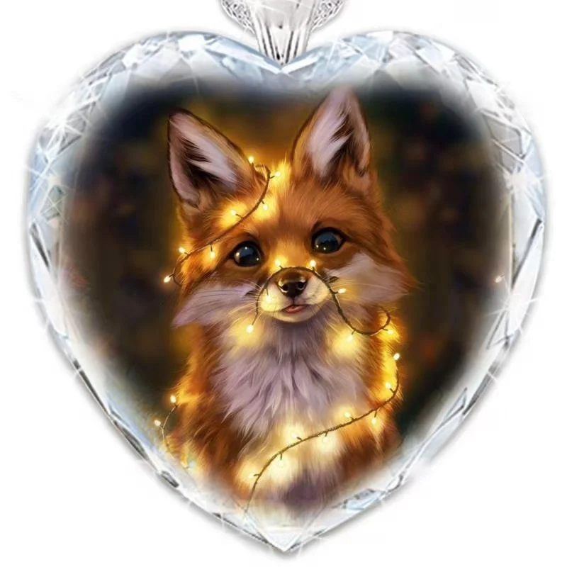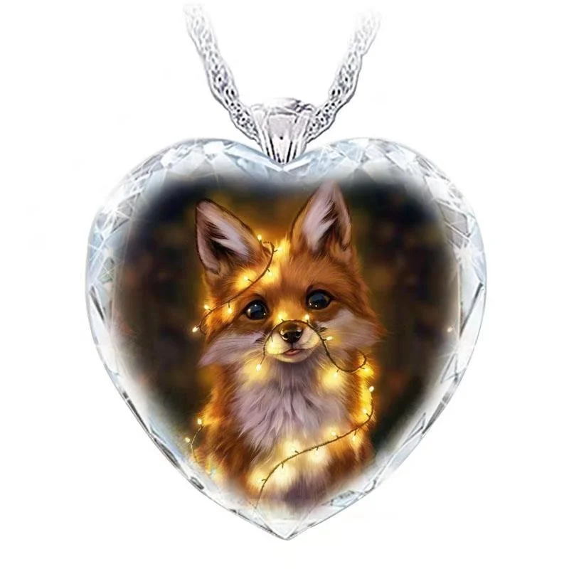 Ожерелье с подвеской в форме сердца из хрустального стекла и лисы, ...