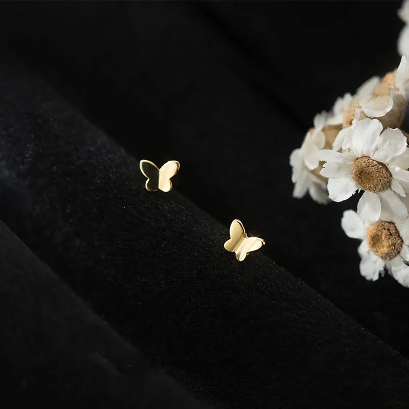 Маленькие простые серьги-гвоздики с летающей бабочкой, элегантные м...
