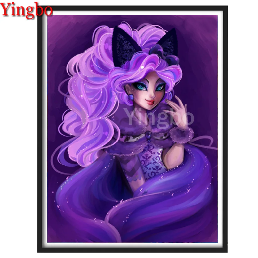 5D алмазная вышивка мультфильм Девушка Алмазная картина полный квадратный фиолетовый длинный волос Принцесса Алмазная мозаика, стразы
