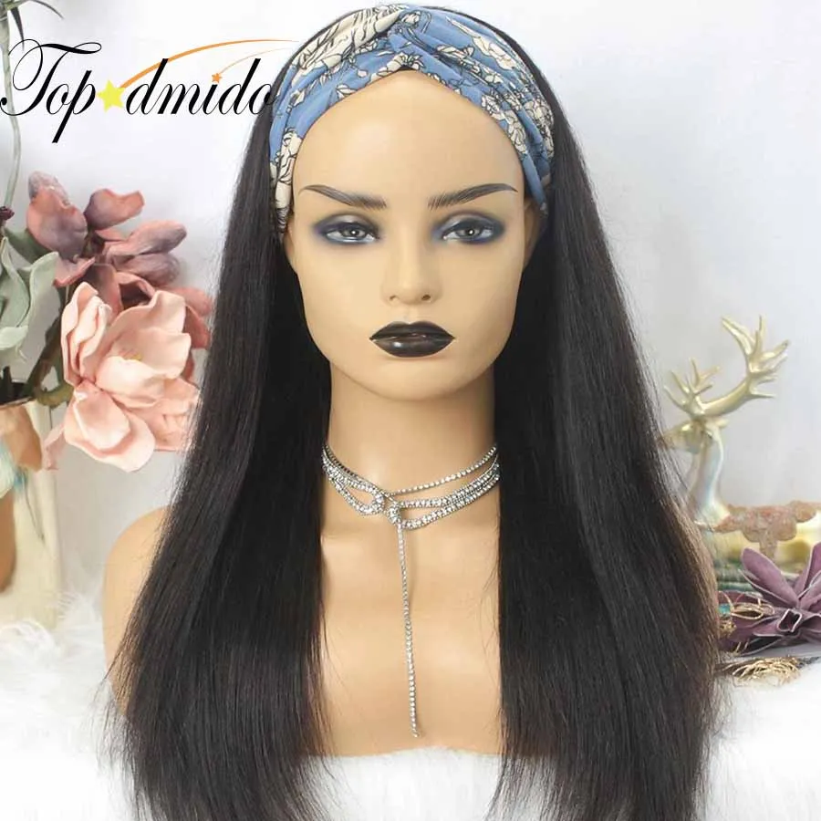 Topodmido хайлайтер кудрявые волосы головная повязка парики для женщин естественный цвет бразильские человеческие волосы Remy парики длинные прямые безклеевые парики