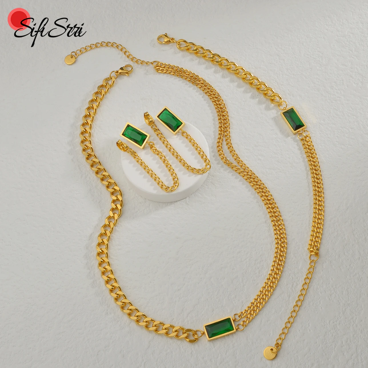 Браслет-цепочка унисекс Sifisrri, с кулоном и кулоном, с зелеными квадратными бриллиантами, на запястье, подарочные украшения, чокер-цепочки