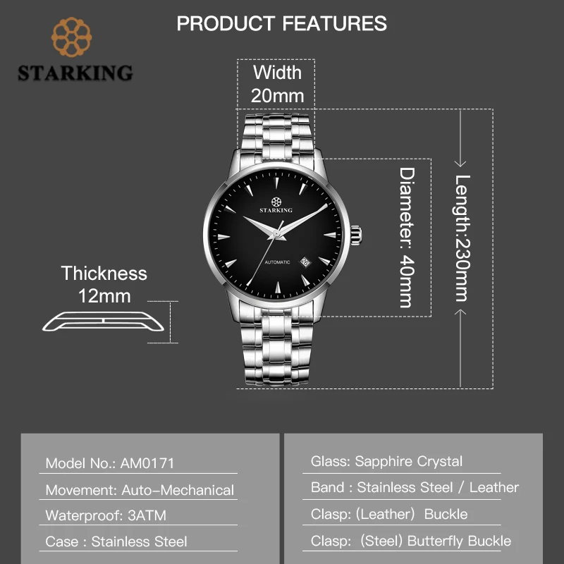 STARKING Женские Механические часы Для мужчин Японии 8215 Movt Нерж...