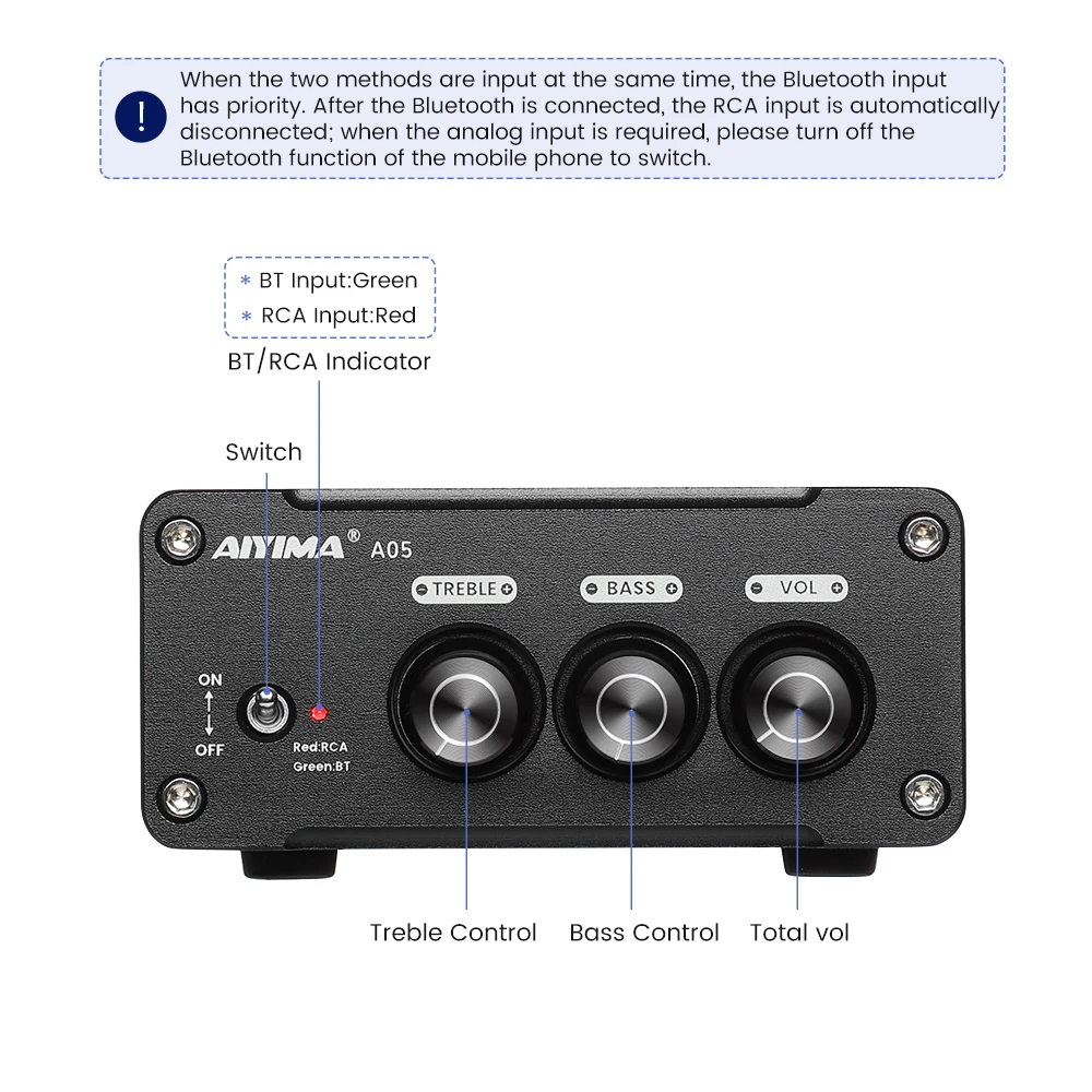 1. Оригинальный TPA3221, NE5532, QCC30342. Используйте чип Bluetooth 5,0, поддержка: APTX-HD/APTX/ACC/SBC, сигнал более стабильный.3. Специальное чувство разрядки красного и серого кольца используется для обеспечения четкого и мощного звука.4. Способ подключения к Bluetooth такой же, как у обычных устройств!5. Режим ввода: аналоговый и Bluetooth Функция ввода. При одновременном вводе двух методов приоритет отдается входу Bluetooth. После подключения Bluetooth,Вход RCA автоматически отключен; Когда требуется аналоговый вход, выключите функцию Bluetooth на мобильный телефон для переключения.Светильник ing style: в режиме RCA красный светильник всегда включен, а модель подключения bluetooth-зеленый.
