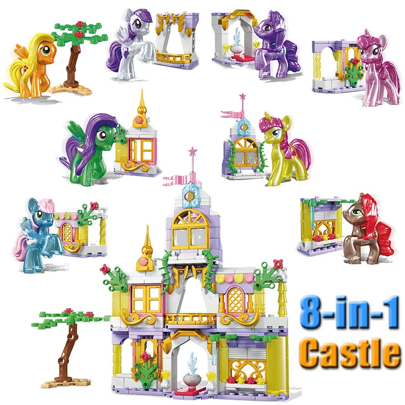 Новейший игрушечный Пони лошадь строительные блокиСоберите 8 комплектов, чтобы построить большой замокВ том числе 8 наборов разных конских мини-куколБлоки совместимы с большинством ведущих брендов, таких как IegoЛучший подарок для девочек100% абсолютно новый, высокое качествоИзготовлен из оригинального АБС-пластика, 100% экологически чистый материалУпаковано в хорошая подарочная упаковкаМожет быть подарком или Прямая поставка