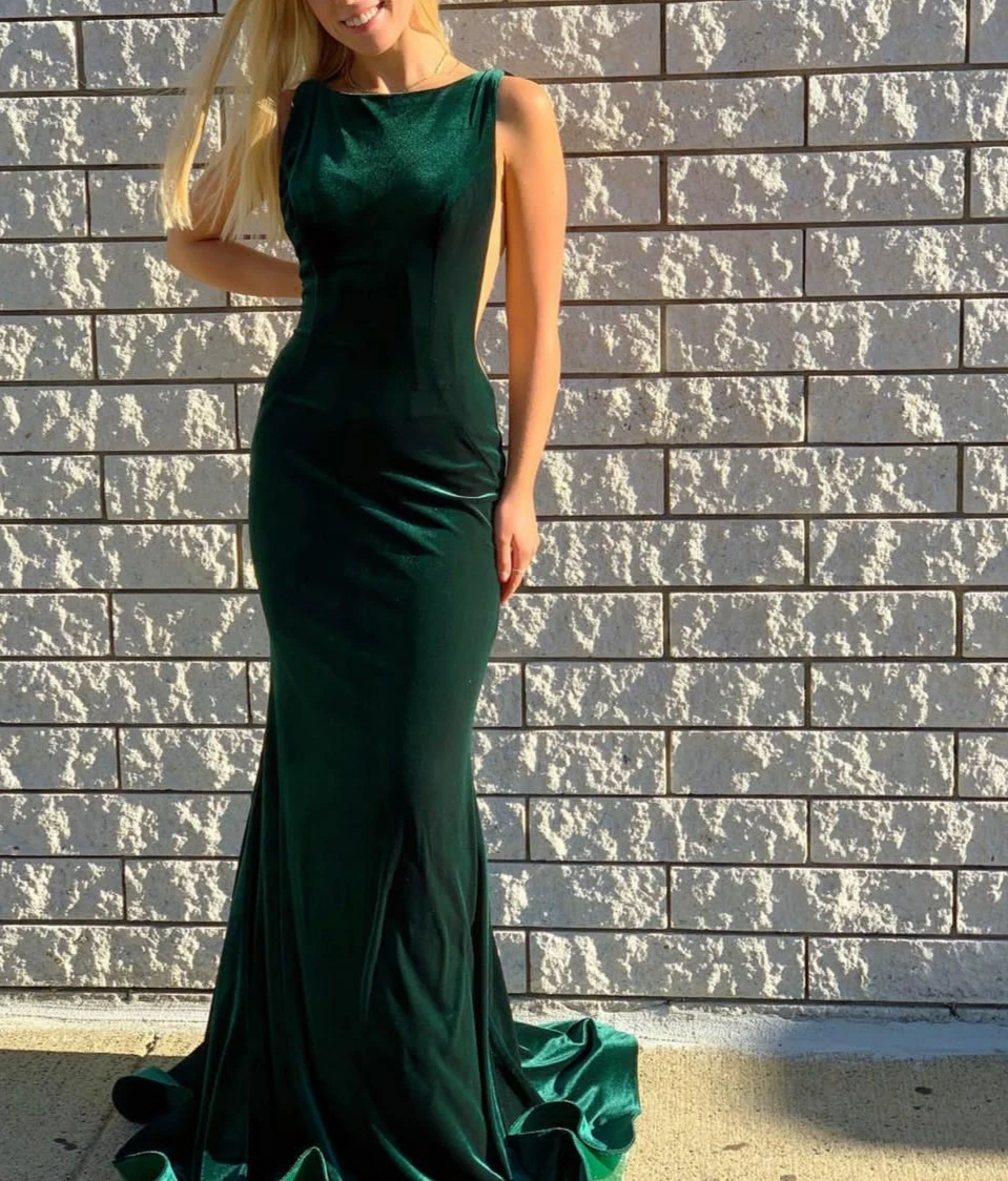 Женское вельветовое вечернее платье-русалка, длинное зеленое платье простого дизайна с открытой спиной и конским волосом