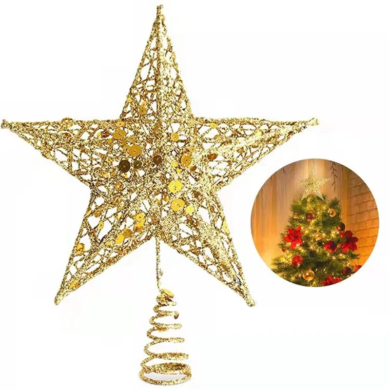 Золотая Серебряная Рождественская железная Елка Топ Звезда Рождественская елка верхнее украшение Рождественская елка украшения Рождественские украшения принадлежности