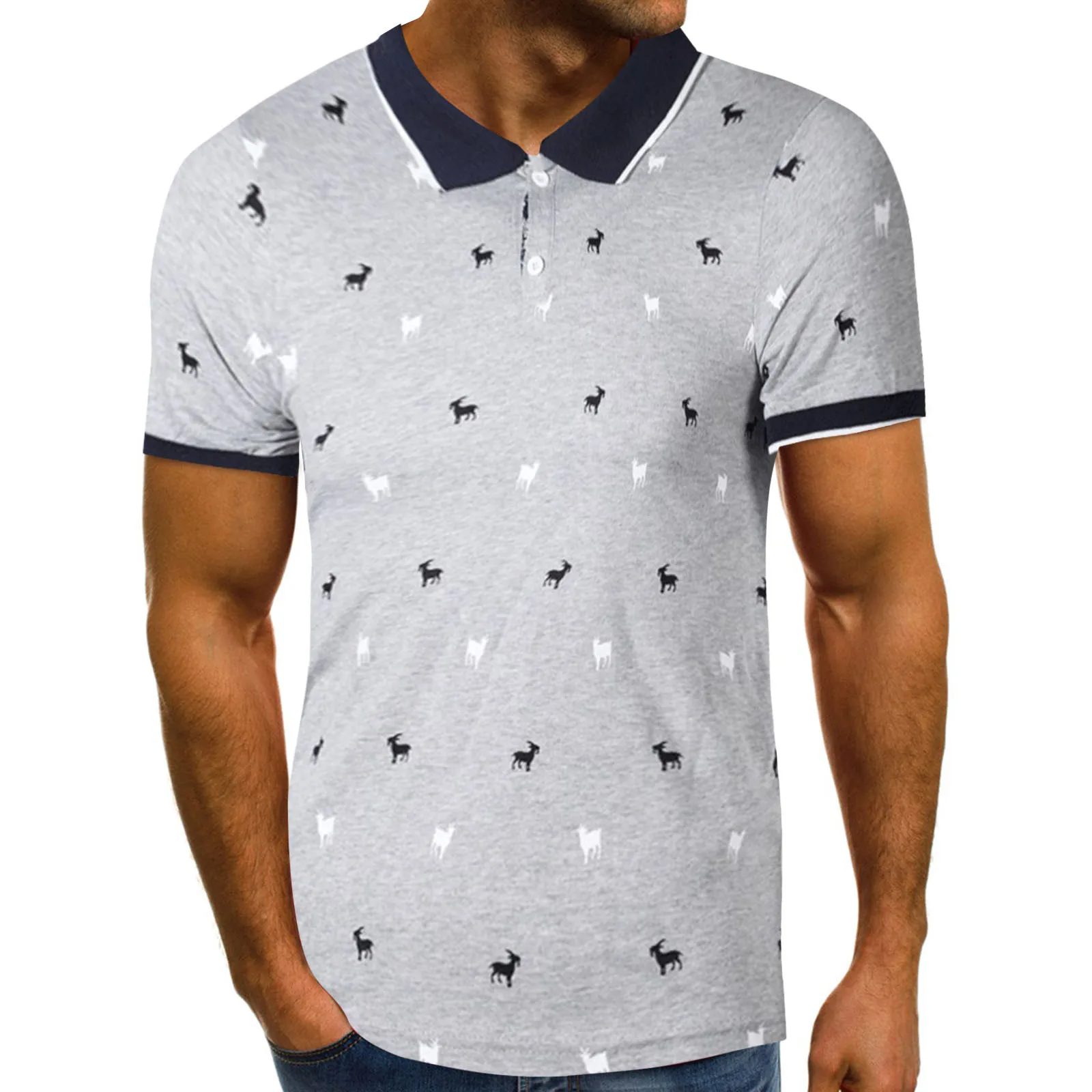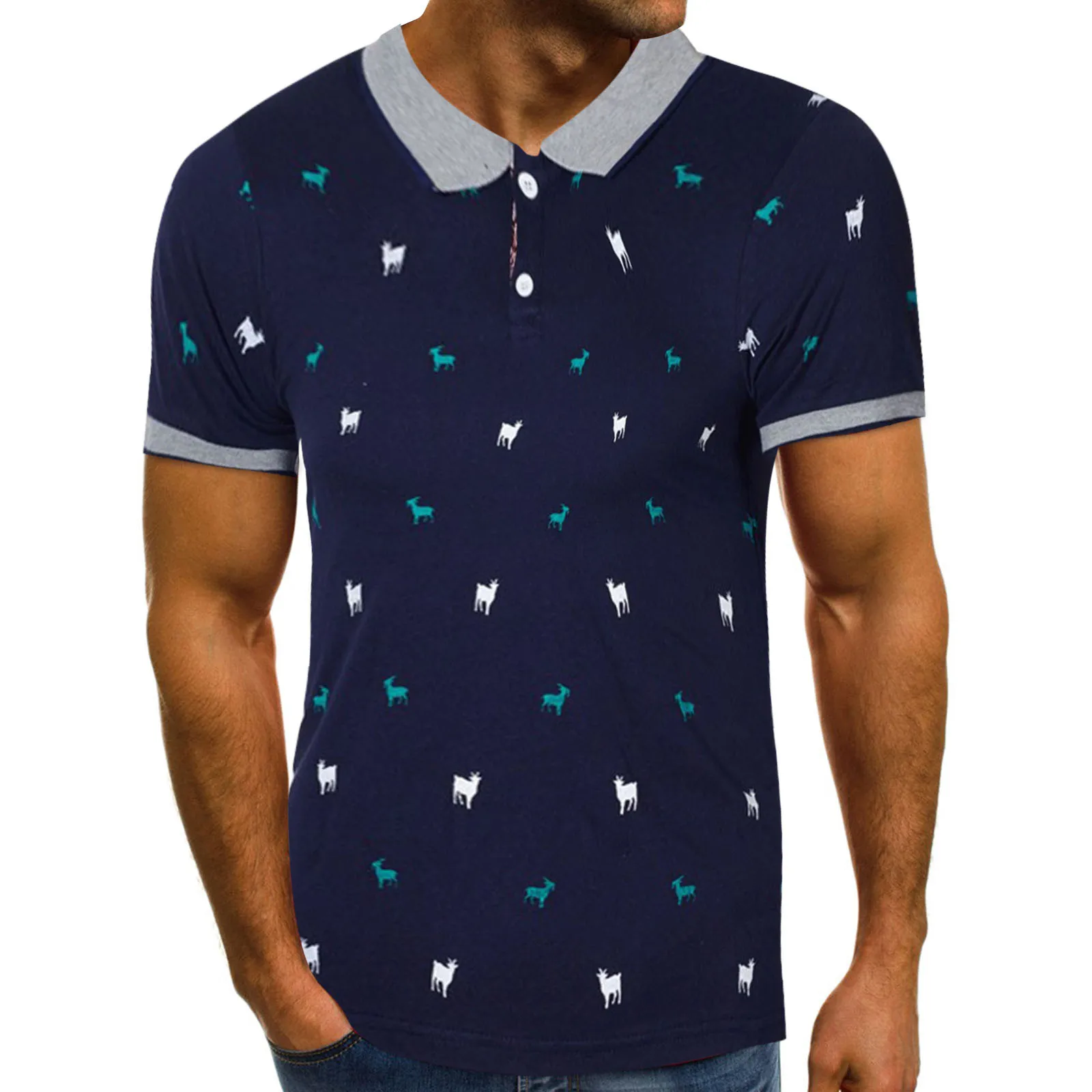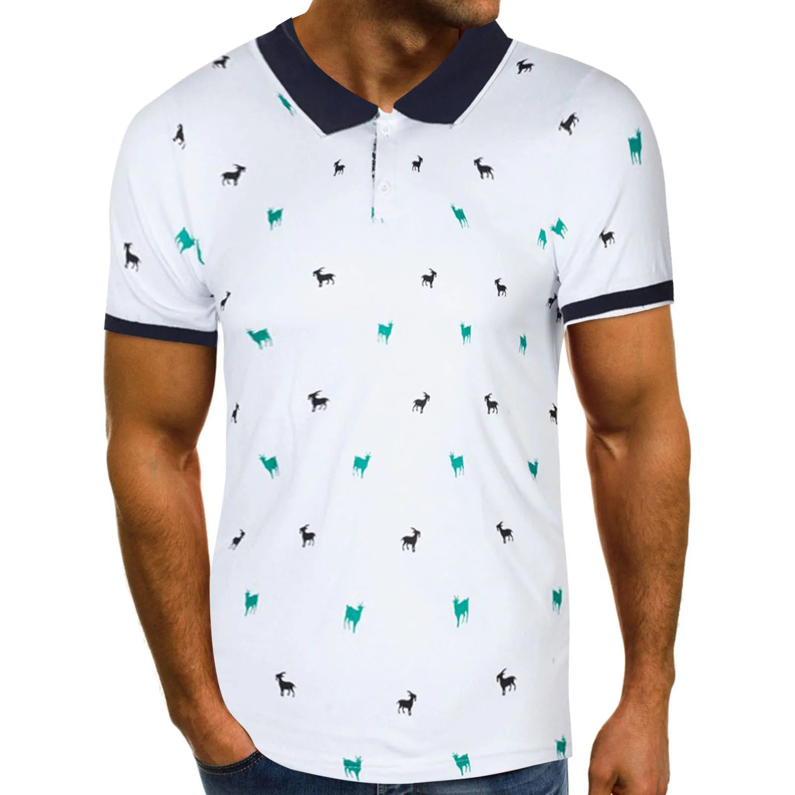 Футболка-поло мужская с коротким рукавом, удобная рубашка-поло с принтом оленя, модная индивидуализированная Повседневная Облегающая рубашка, лето