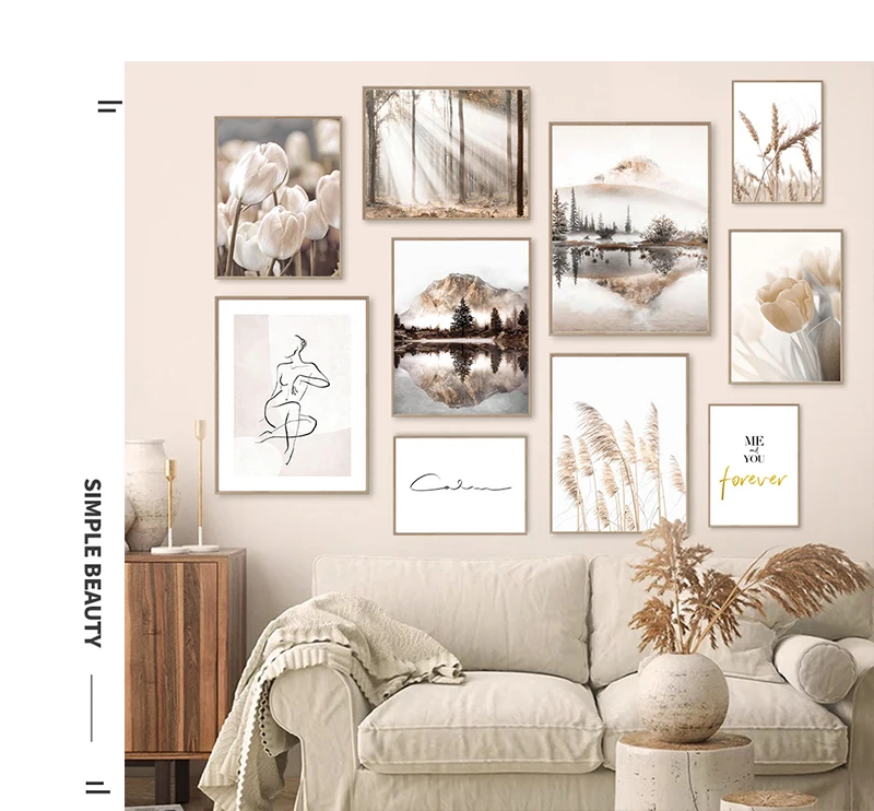 Пейзаж природы, плакат, настенное искусство, холст, живопись, Beigh...