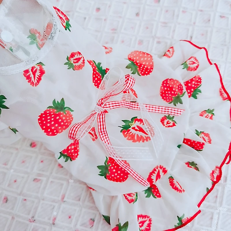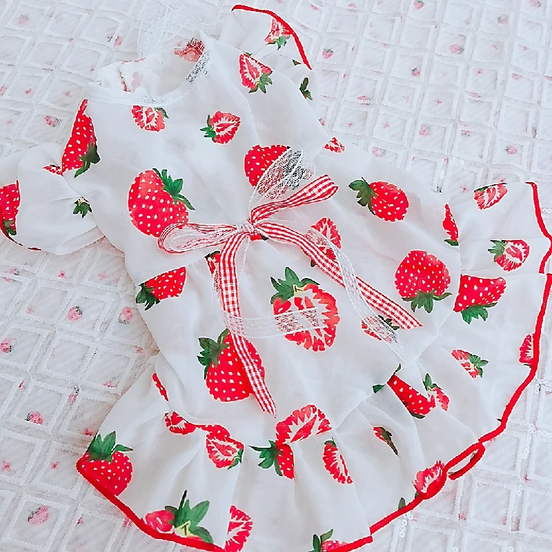 Шифоновое платье с изображением собаки; Сезон Лето Одежда для домашних животных с милым клубничным принтом Кошка Собака Щенок Юбка йоркширского терьера своего померанского шпица-тцу Мальты одежда шнауцера XS