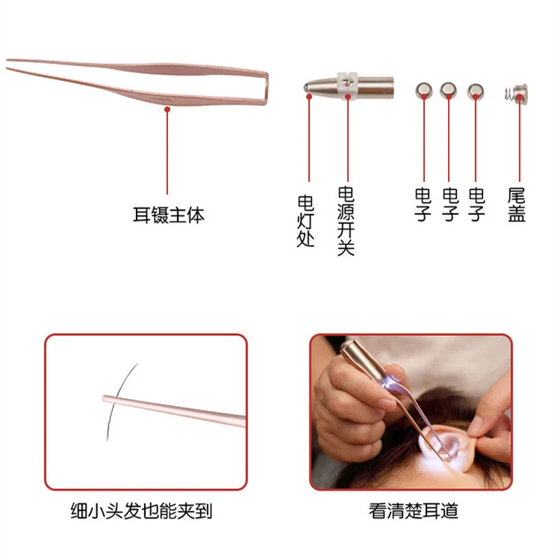 Горячий продавать Светодиодный Фонарик EarPick Очистители инструмент ушами, носом, пупком младенца Нержавеющаясталь Пинцет для удаления ушной серы уход за ушами