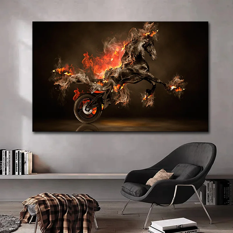 Животное, настенное искусство, пламя плакат со львом, Картина на хо...