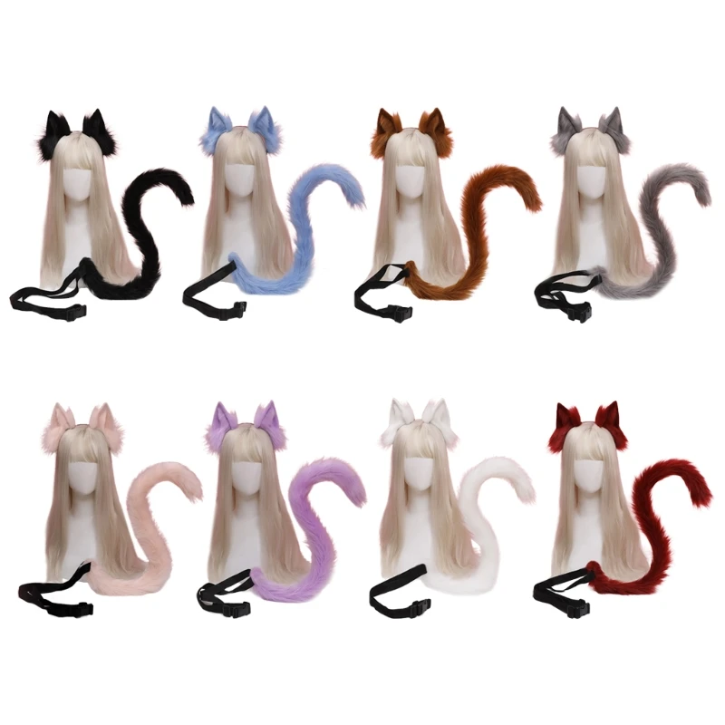 Аниме Косплэй реквизит с украшением в виде кошачьих ушек и хвоста плюшевая пушистая фабричная со звериными ушами, Hairhoop карнавальный костюм Детский костюм для вечеринок необычное рождественское платье