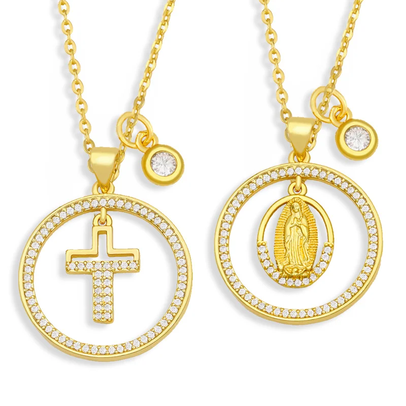 Золото звеньевая цепь Девы Марии ожерелье для женщин со стразами ка...