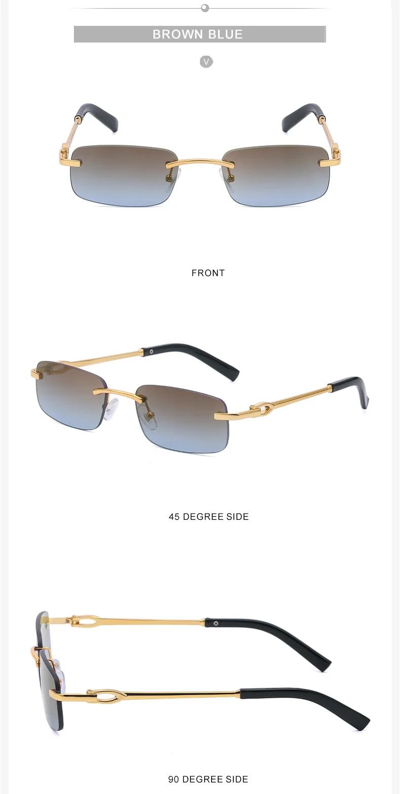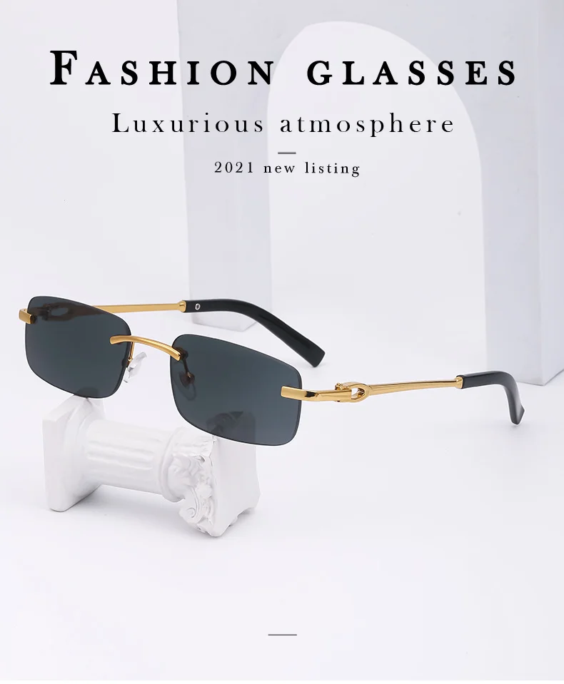 2021 Модные солнцезащитные очки без оправы для мужчин винтажные ква...