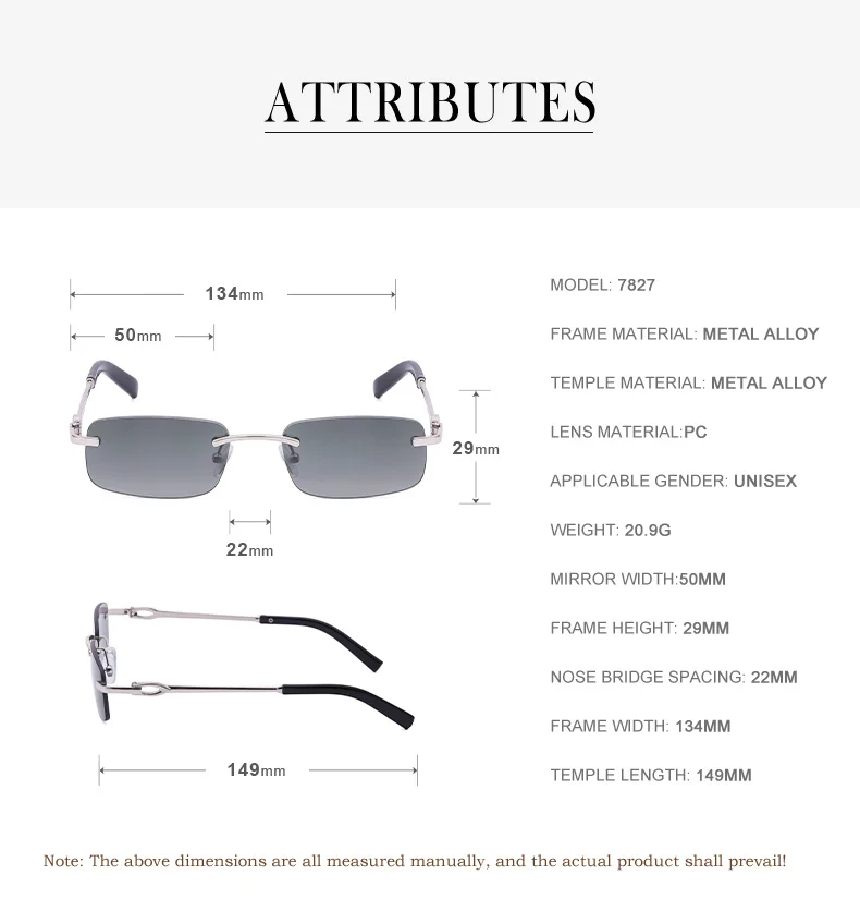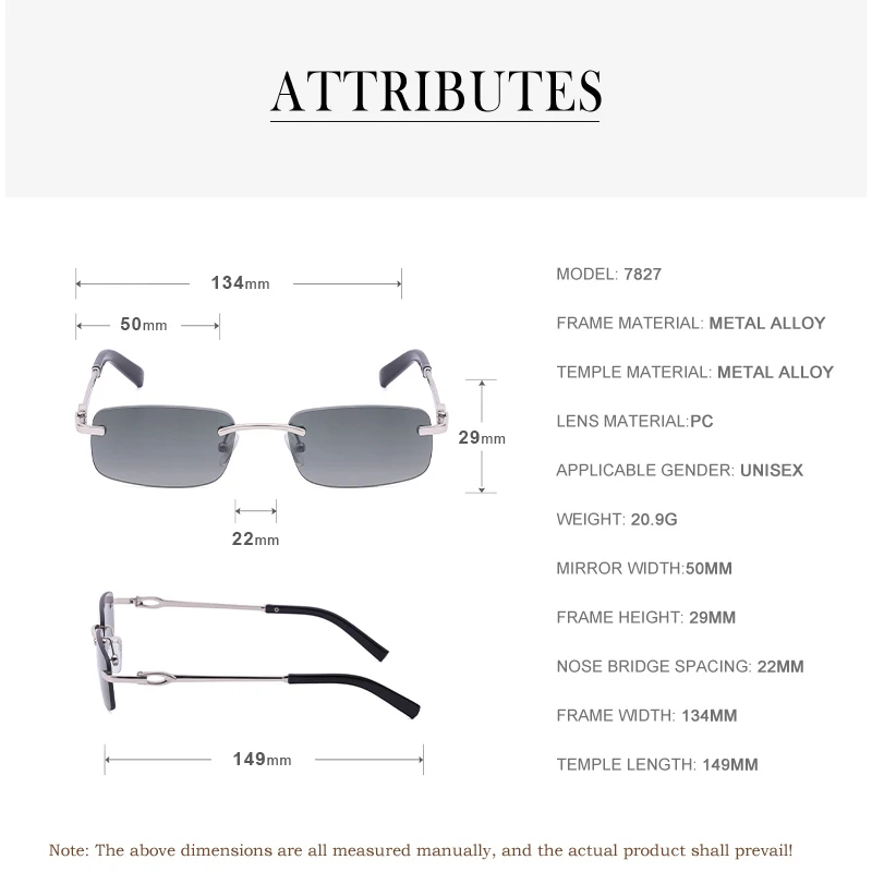 Солнцезащитные очки без оправы для мужчин и женщин UV400, прямоугол...