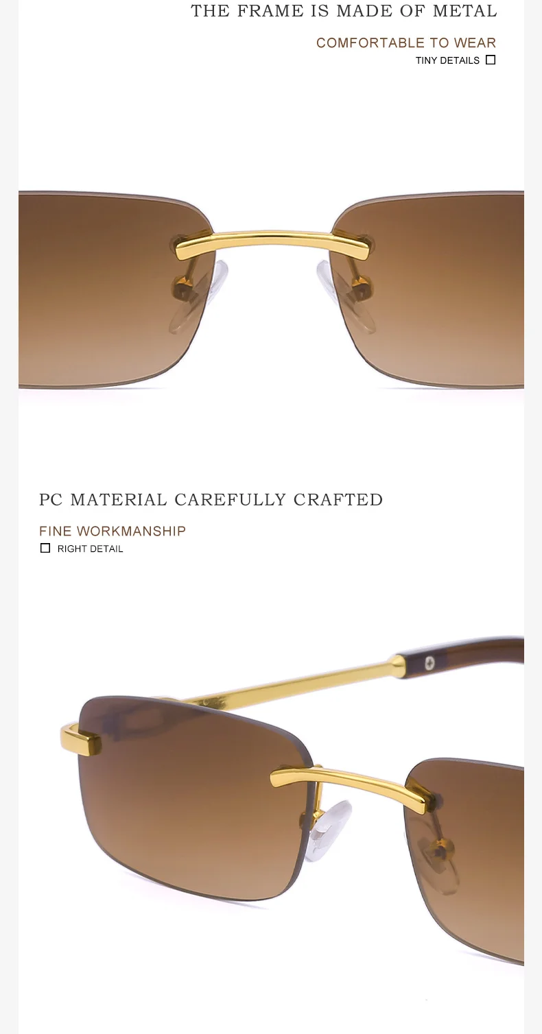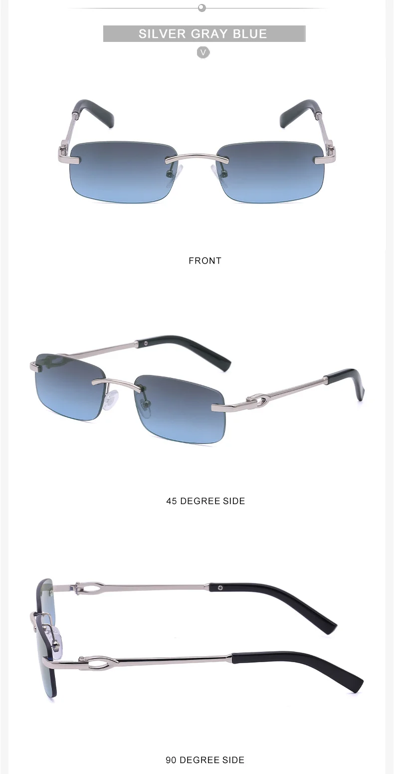Солнцезащитные очки без оправы для мужчин и женщин, прямоугольной формы, роскошные брендовые дизайнерские ретро солнечные очки в маленькой оправе, Модные Винтажные Очки, 2022