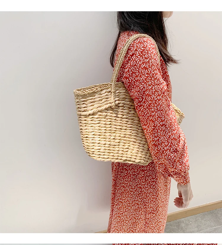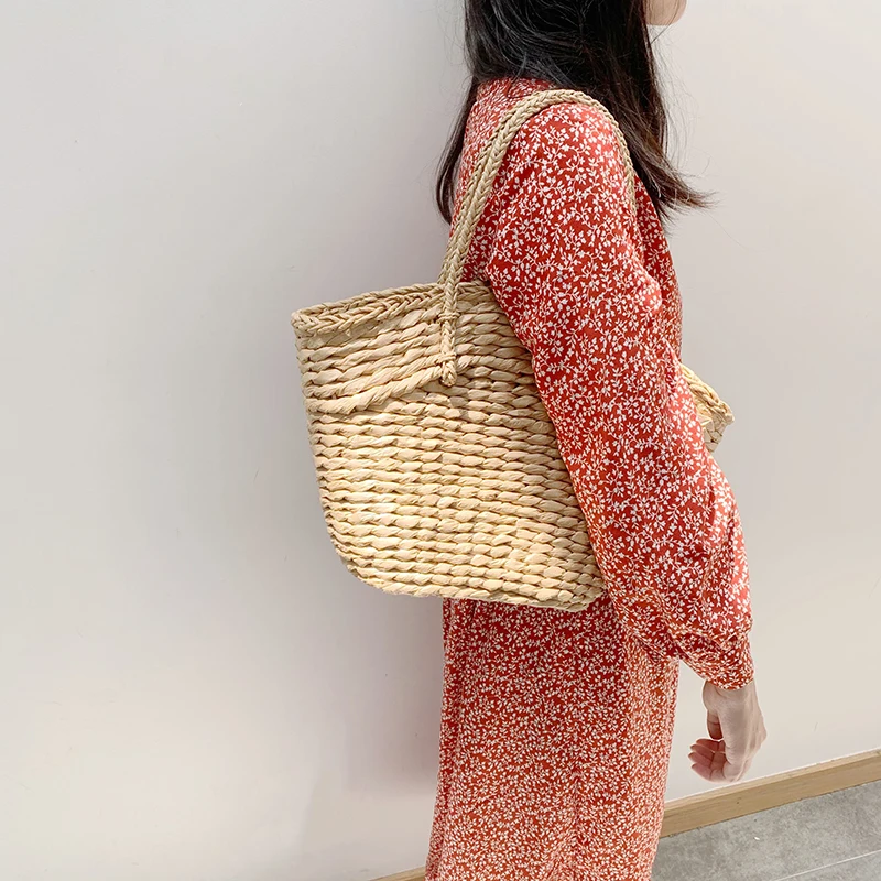 Модные женские сумки из ротанга, женская сумка на плечо, летняя пляжная соломенная сумка, вместительная сумка-тоут, большие кошельки в горошек с корзинами