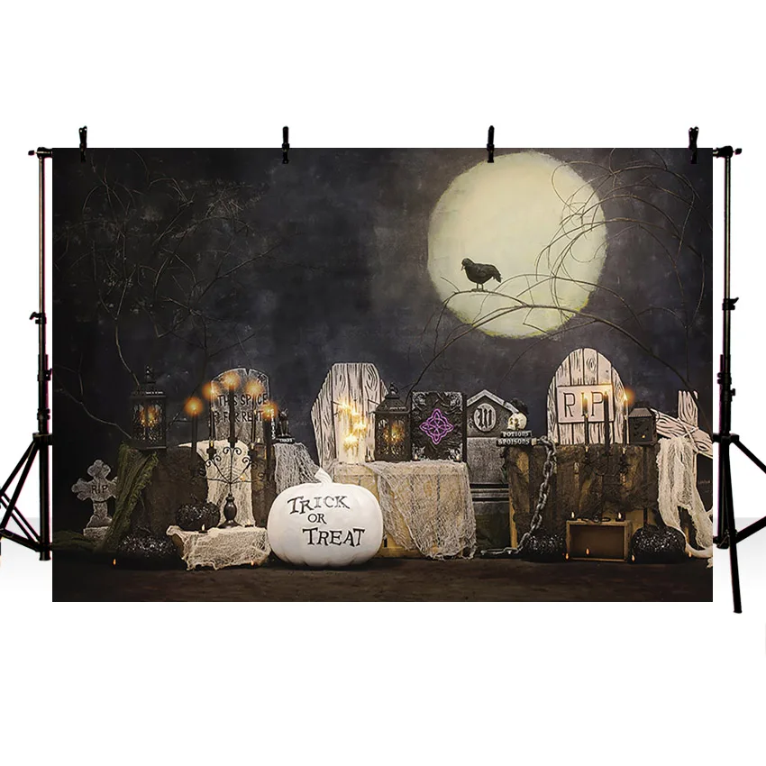 Avezano Хэллоуин фон Тыква фонарь призрак ночной замок летучая мышь...