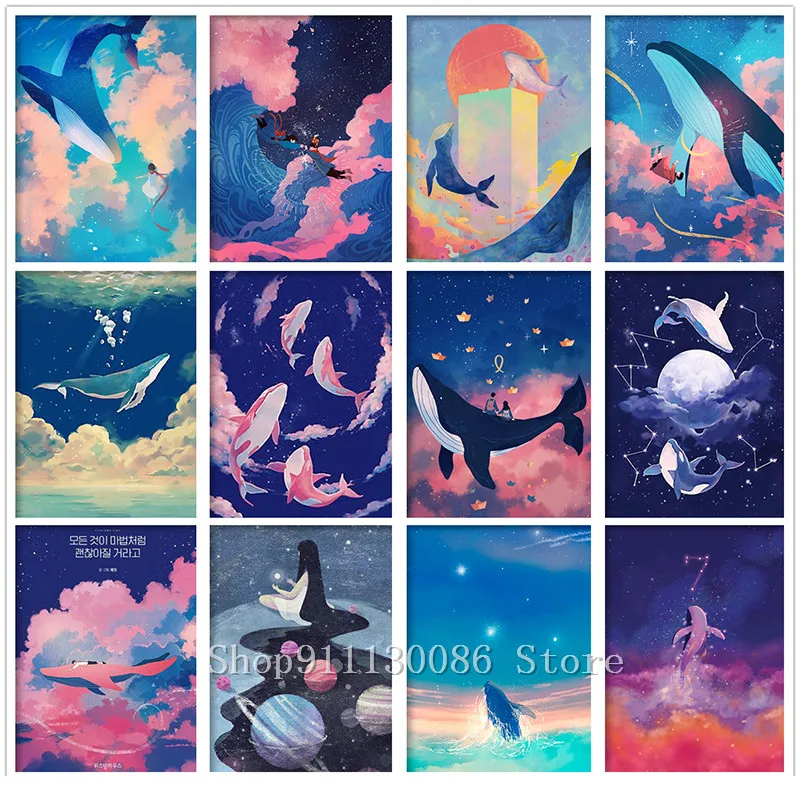 Алмазная 5D мозаика сделай сам, картина с морскими животными, китами, цветная иллюстрация, вышивка крестиком, домашний декор, подарок