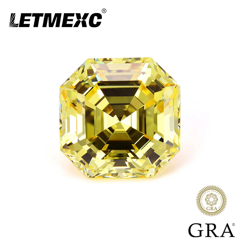 Letmexc натуральный желтый Муассанит, драгоценные камни Asscher Cut VVS1 2.0ct 3.0ct для пользовательского кольца с сертификатом