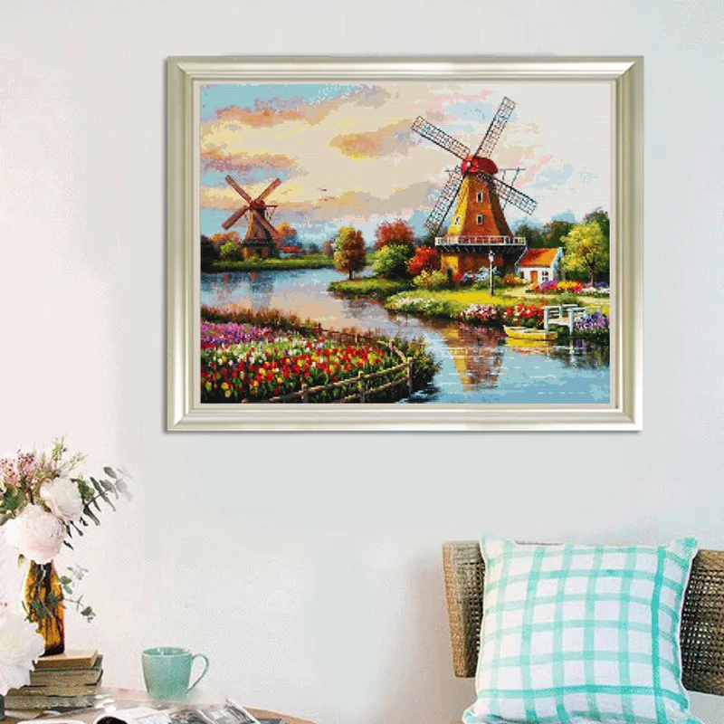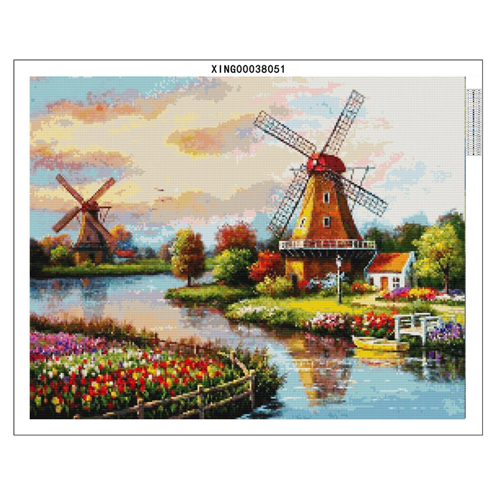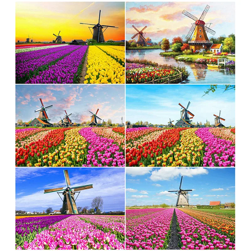 Полная квадратная алмазная живопись ветряная мельница Стразы 5D Сделай Сам мозаика пейзаж ручной работы подарок полные комплекты, украшение для дома