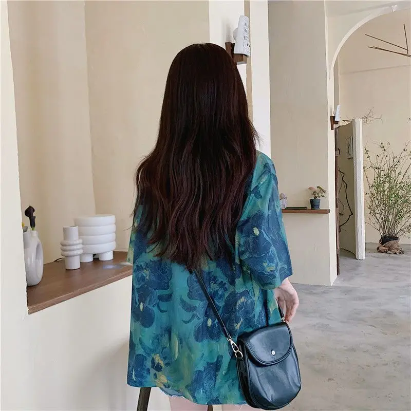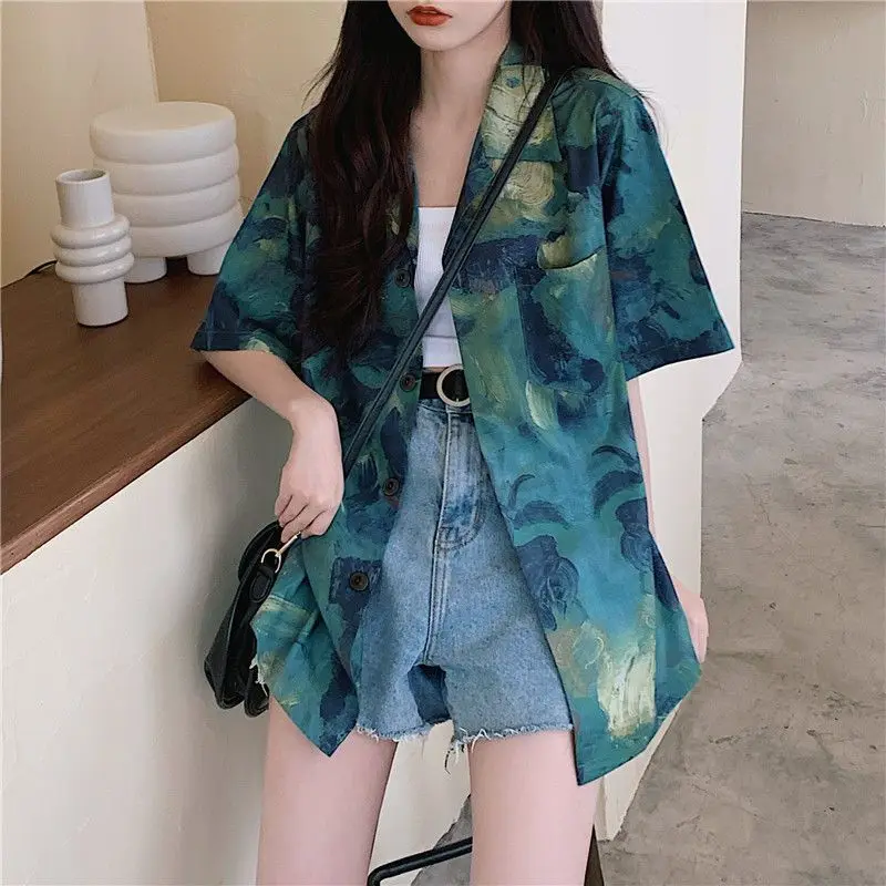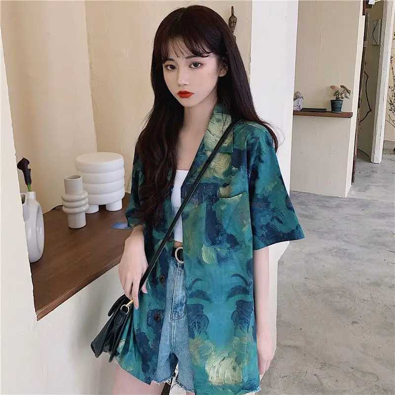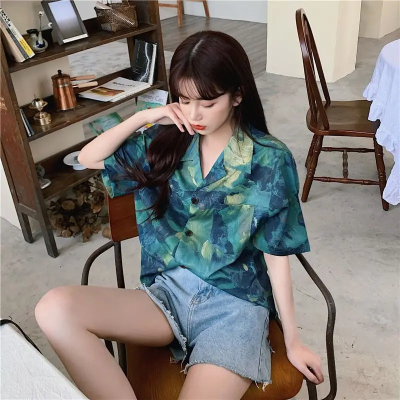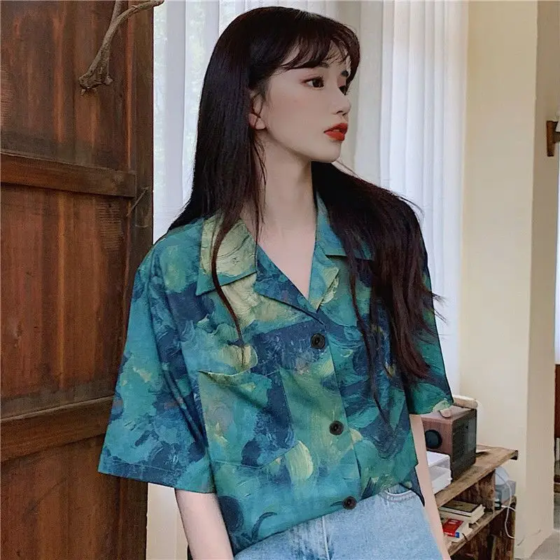 Женская рубашка в стиле ретро, летняя свободная футболка большого размера с коротким рукавом и отложным воротником, с принтом в Гонконге