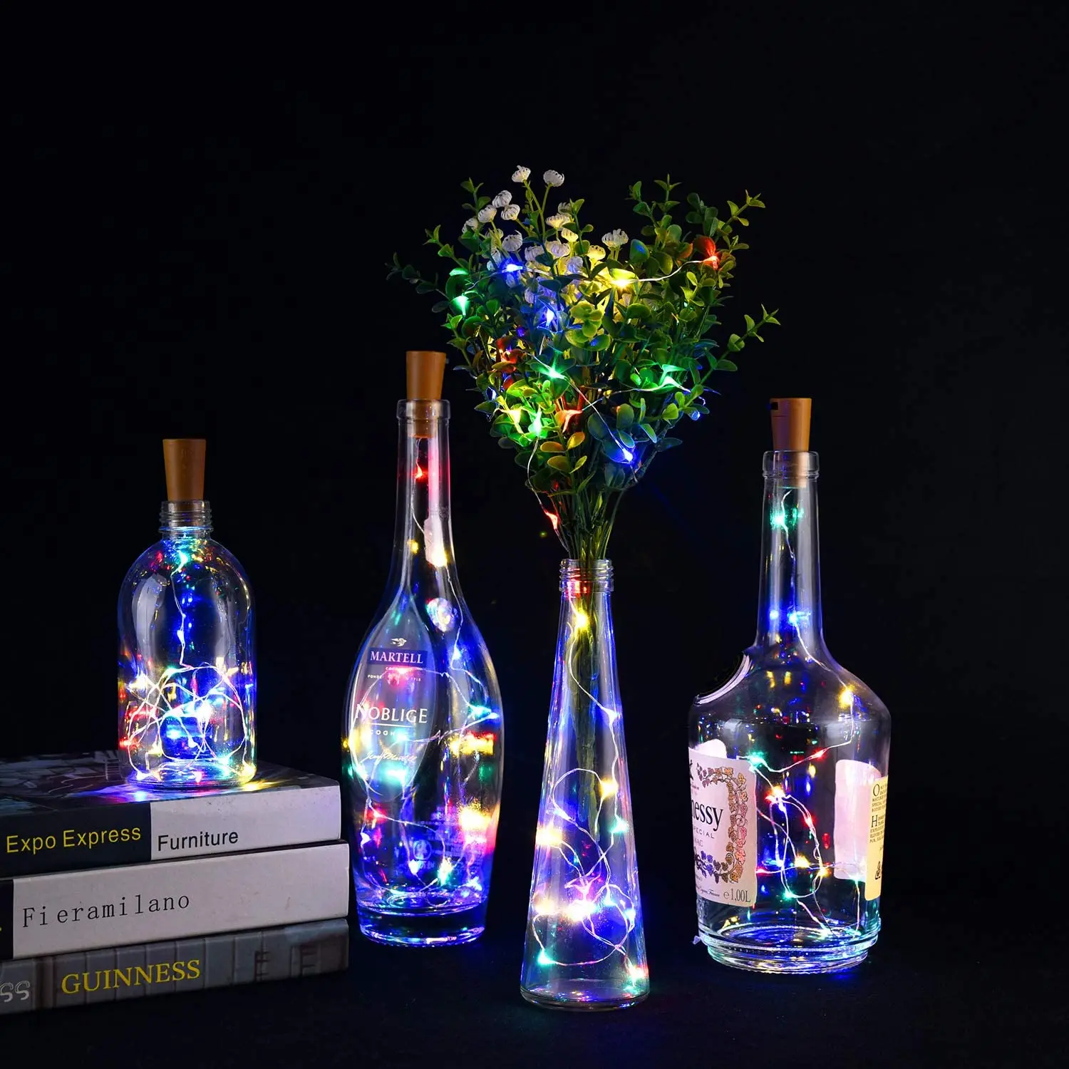 20 шт./лот гирлянда на батарейках для бутылок вина с пробкой, 1 м, 2 м, светодиодная медная гирлянда, сказочные огни, вечерние гирлянды для свадебного декора