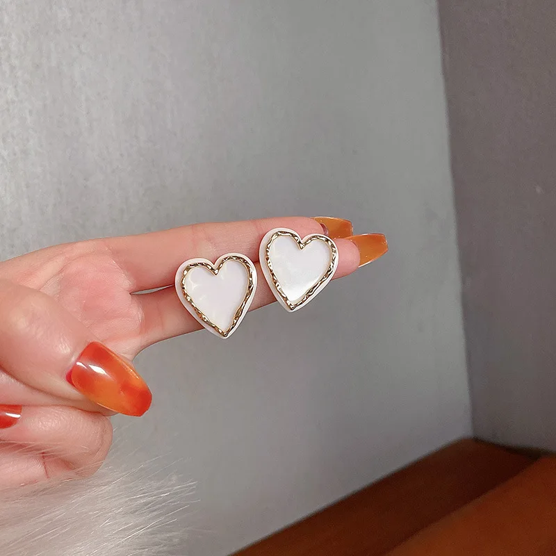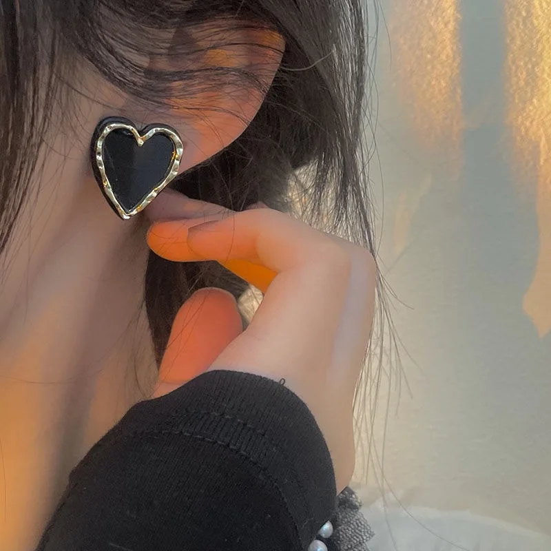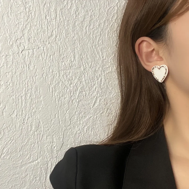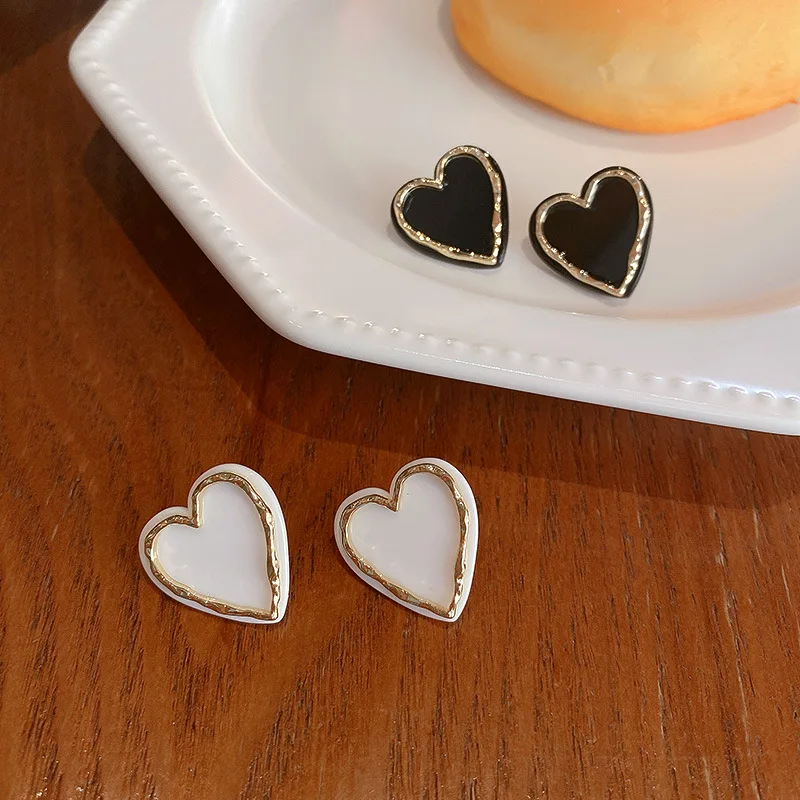 Черные и белые серьги в форме сердца, новинка 2021, простые акриловые серьги-гвоздики в форме сердца, индивидуальные корейские модные украшения, серьги