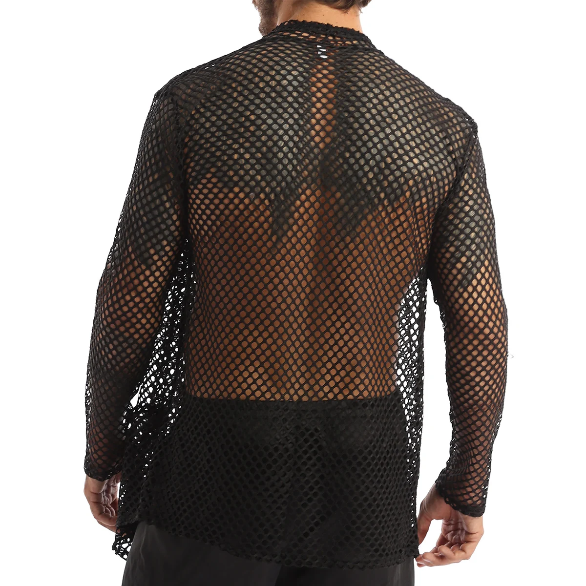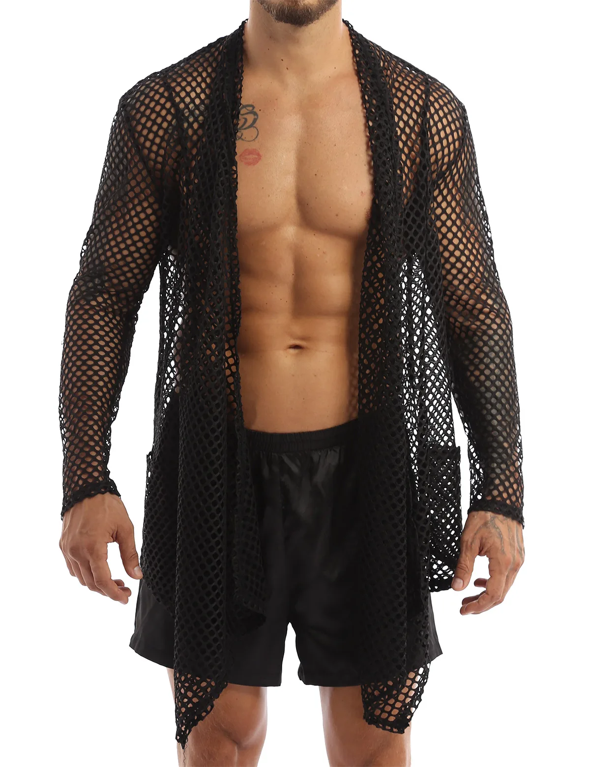 Мужской сетчатый кардиган, топ, Прозрачное нижнее белье, халаты, одежда для сна, пижамы