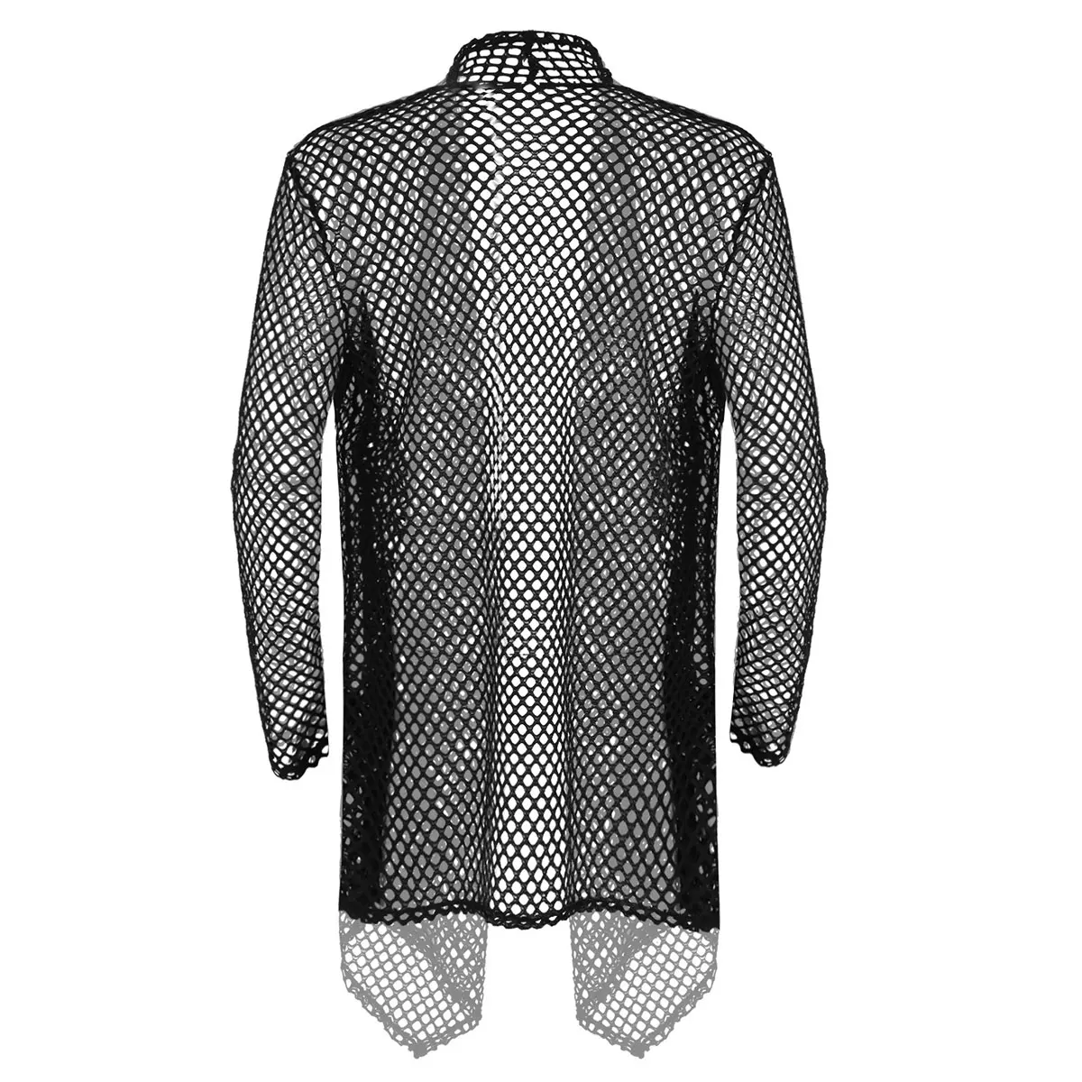 Особенности: Мужская длинная драпированная накидка в сетку с открытой передней частью, добавит вашему стилю непревзойденный авангардный край и модный штрих. Кардиган с воротником-шалью и рюшами, с длинными рукавами, сетчатая Просвечивающая ткань, удлиненная драпировка и асимметричный низкий подол с двумя карманами внизу. Изготовлен из легкой ткани, мягкий и удобный в носке. Отлично сочетается с повседневной футболкой или топом-бабочкой, показывает ваше идеальное тело. Идеально подходит для костюмов, вечерние, концертные, тематические вечерние, ночной клуб, хип-хоп, уличная одежда, шоу, городской стиль или повседневная одежда. Пожалуйста, внимательно проверьте информацию о размерах перед заказом, химчисткой, поддержкой рук и машинной стирки.