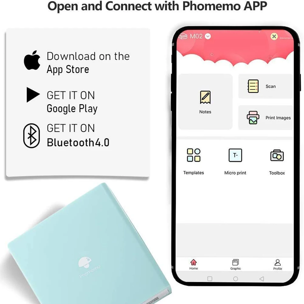 Термопринтер Phomemo M02, компактный, Bluetooth, для печати фотографий, этикеток, бумаги