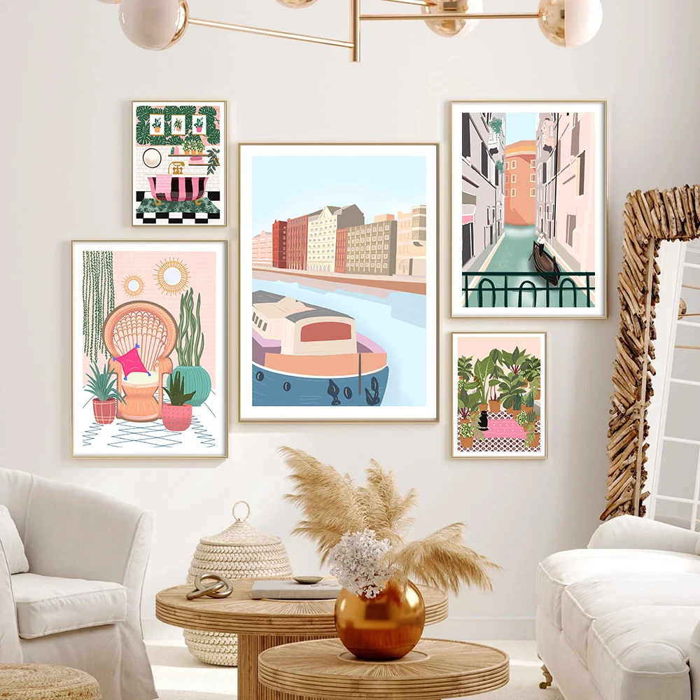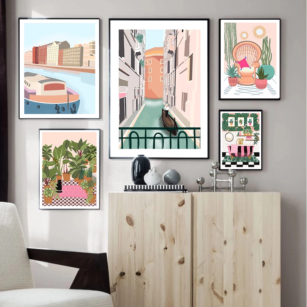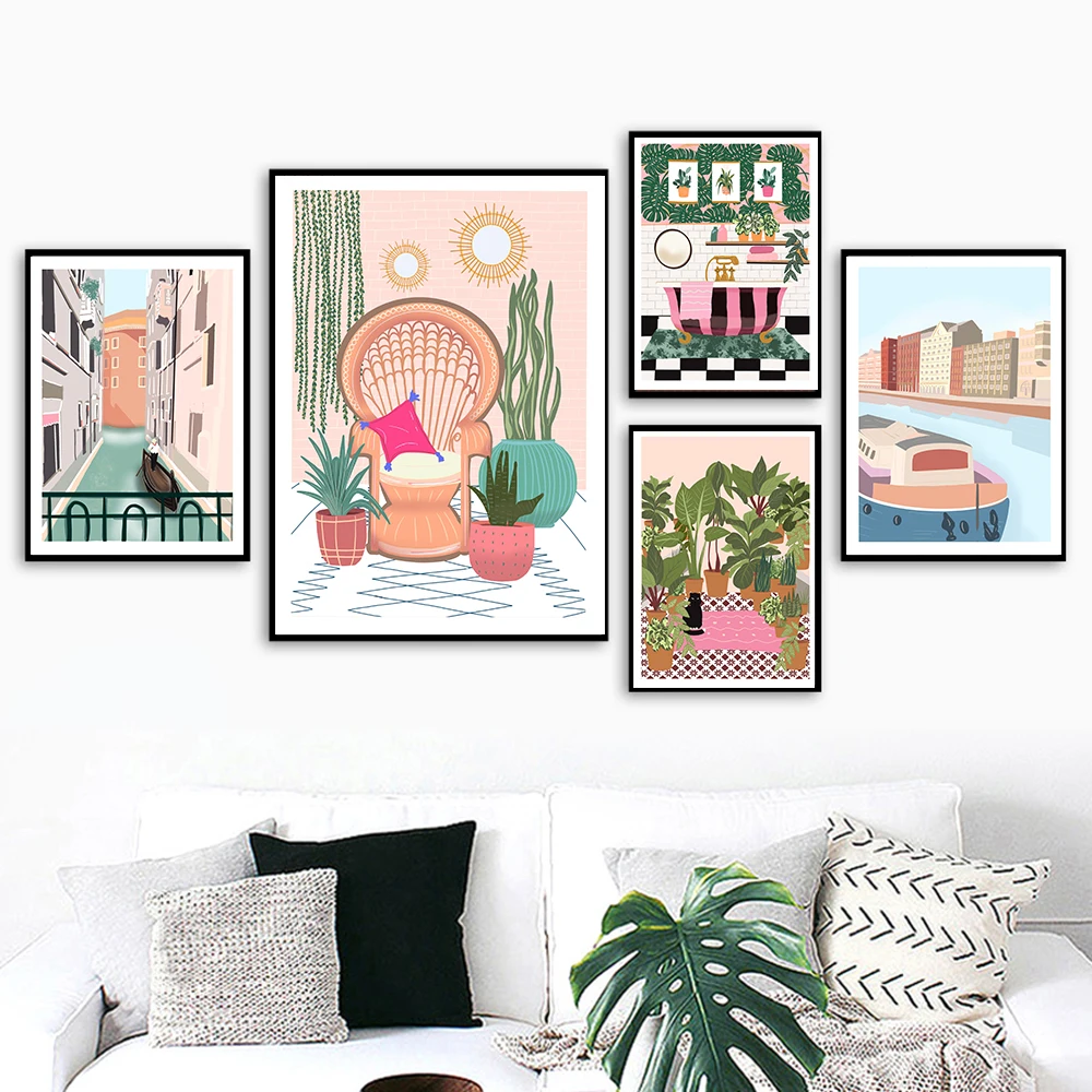 Абстрактный винтажный постер с изображением растений, скандинавский Кот, растения, настенная живопись, картины для гостиной, дома, модное, в стиле бохо