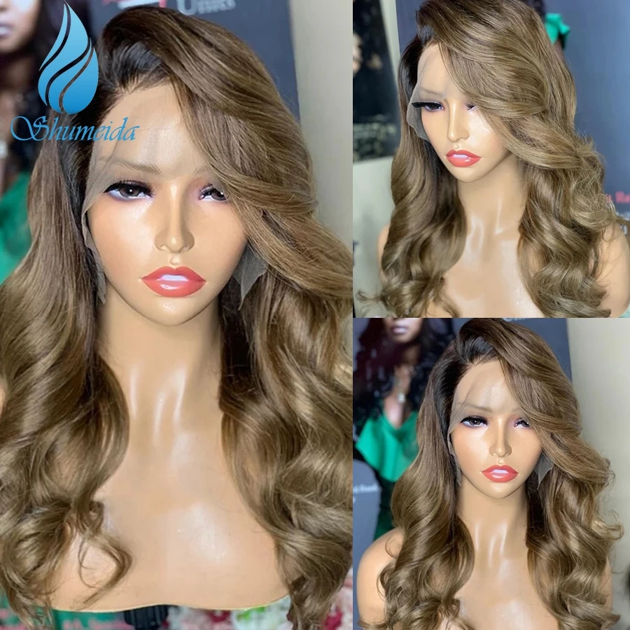 Shumeida Омбре коричневый цвет 13*4 кружевные передние человеческие...