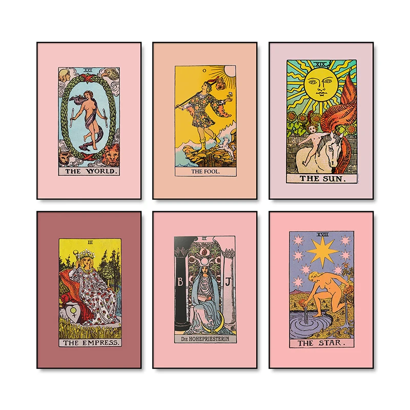 Настенные картины скандинавских абстрактов с изображением Райдера Таро, холст с изображением солнца и Импресса, винтажные постеры, принты для домашнего декора